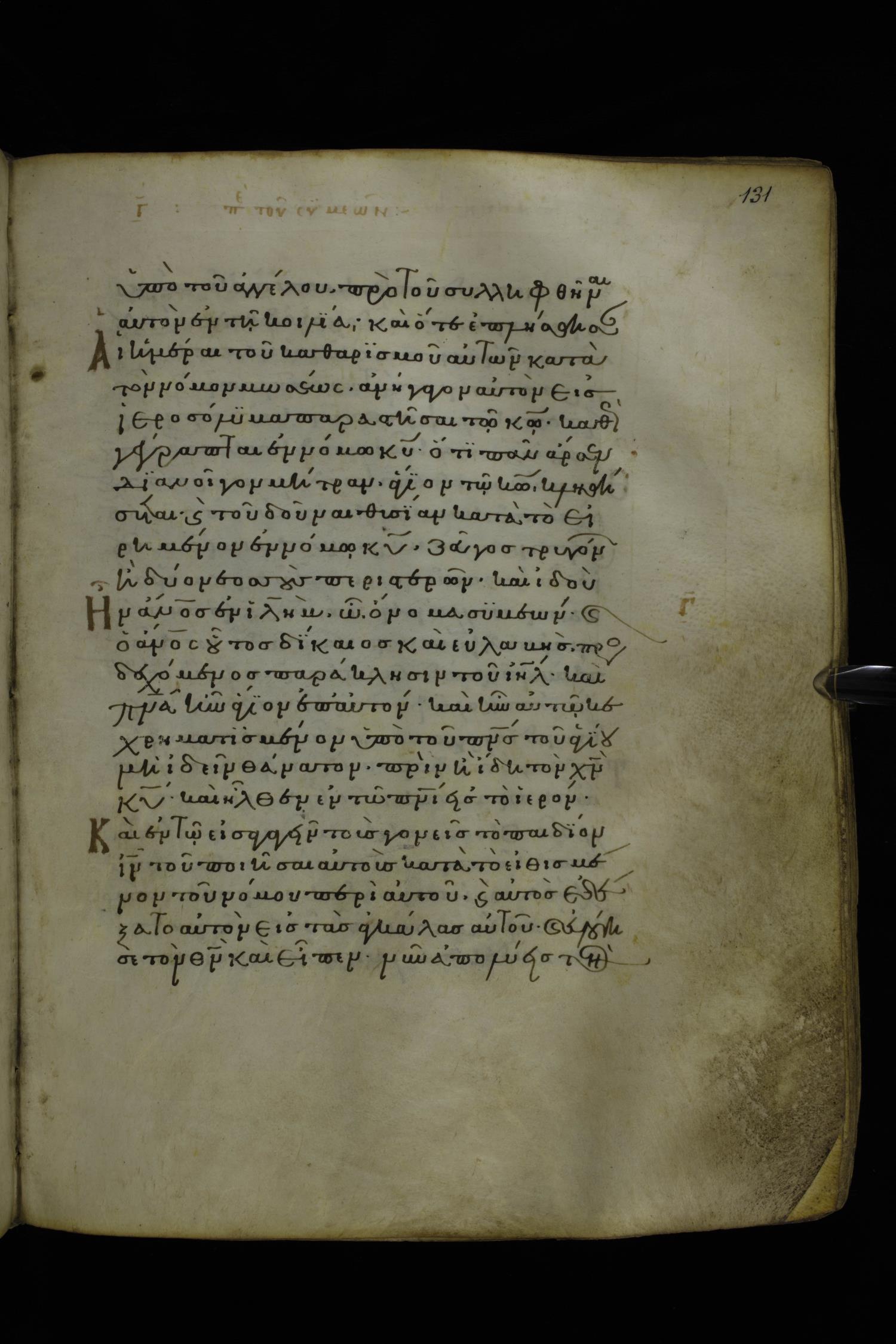 Twelfth century minuscule of the Gospels on parchment; 277 leaves, 1 column, 22 lines per column. Images were taken at the National Library of Greece in Athens.