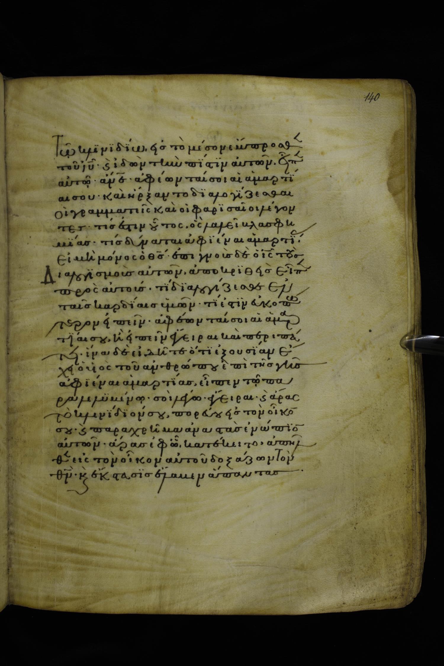 Twelfth century minuscule of the Gospels on parchment; 277 leaves, 1 column, 22 lines per column. Images were taken at the National Library of Greece in Athens.