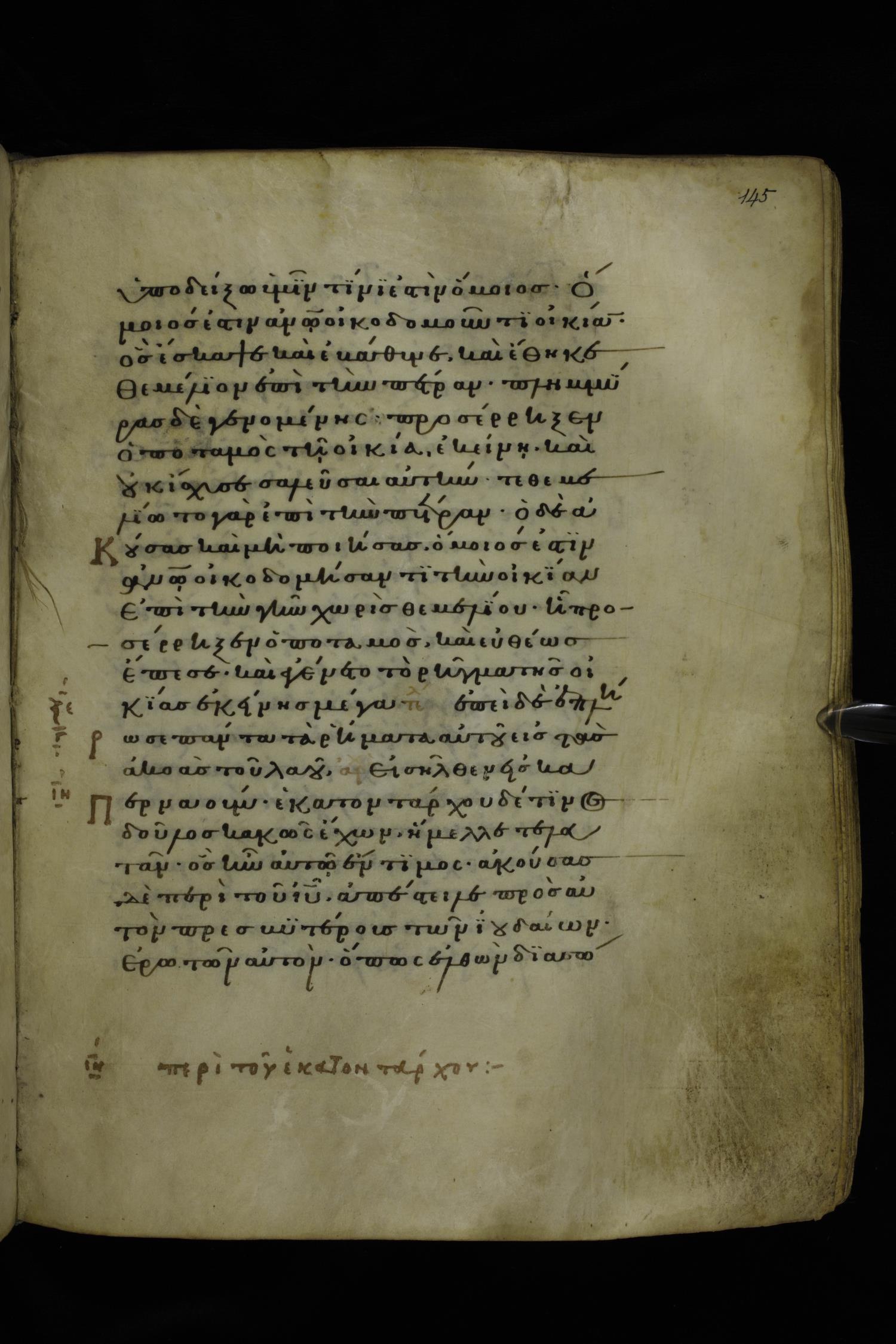 Twelfth century minuscule of the Gospels on parchment; 277 leaves, 1 column, 22 lines per column. Images were taken at the National Library of Greece in Athens.