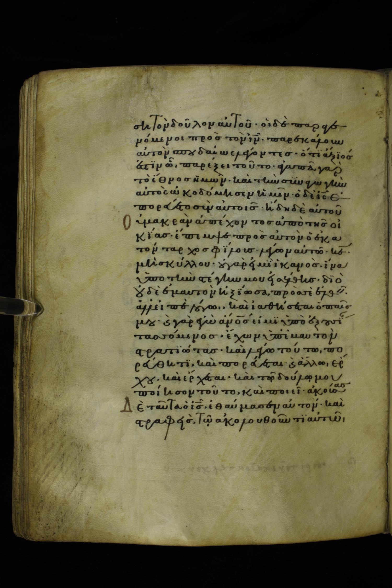 Twelfth century minuscule of the Gospels on parchment; 277 leaves, 1 column, 22 lines per column. Images were taken at the National Library of Greece in Athens.