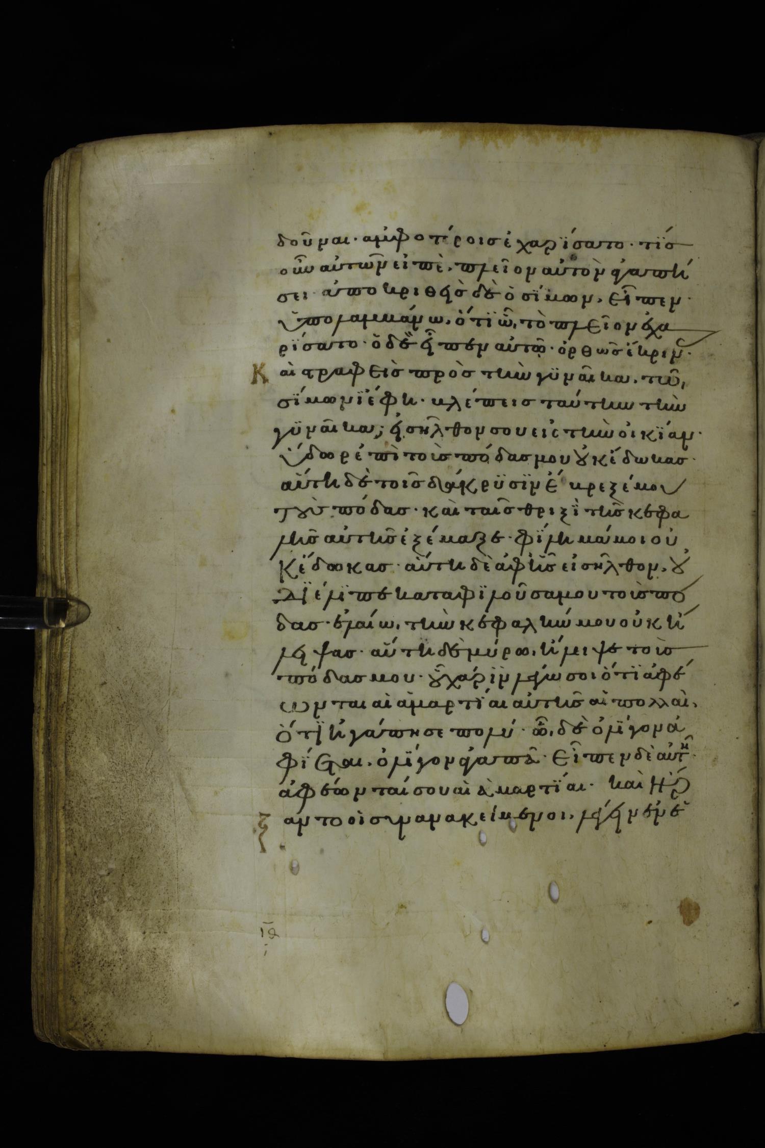 Twelfth century minuscule of the Gospels on parchment; 277 leaves, 1 column, 22 lines per column. Images were taken at the National Library of Greece in Athens.