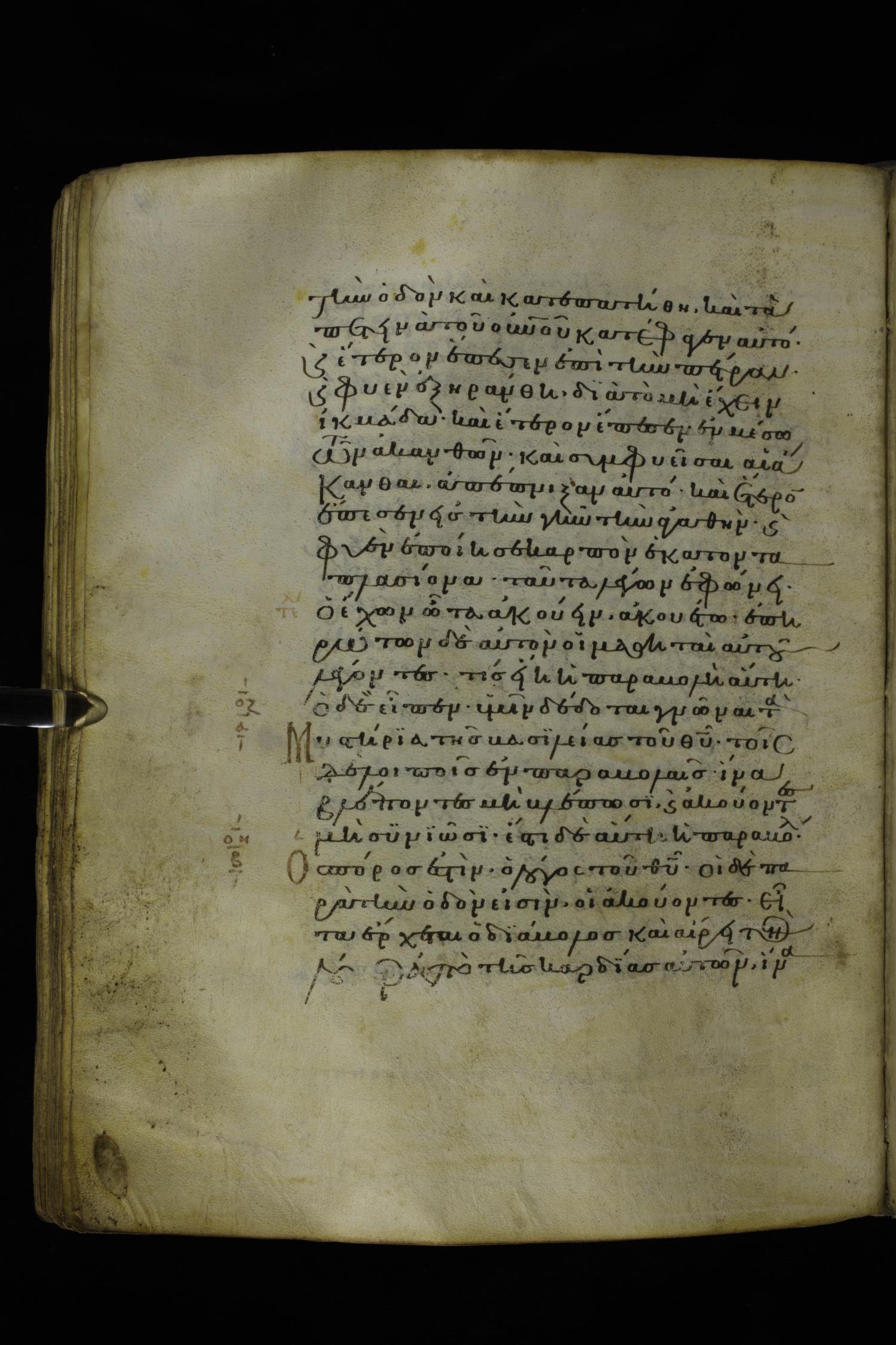 Twelfth century minuscule of the Gospels on parchment; 277 leaves, 1 column, 22 lines per column. Images were taken at the National Library of Greece in Athens.