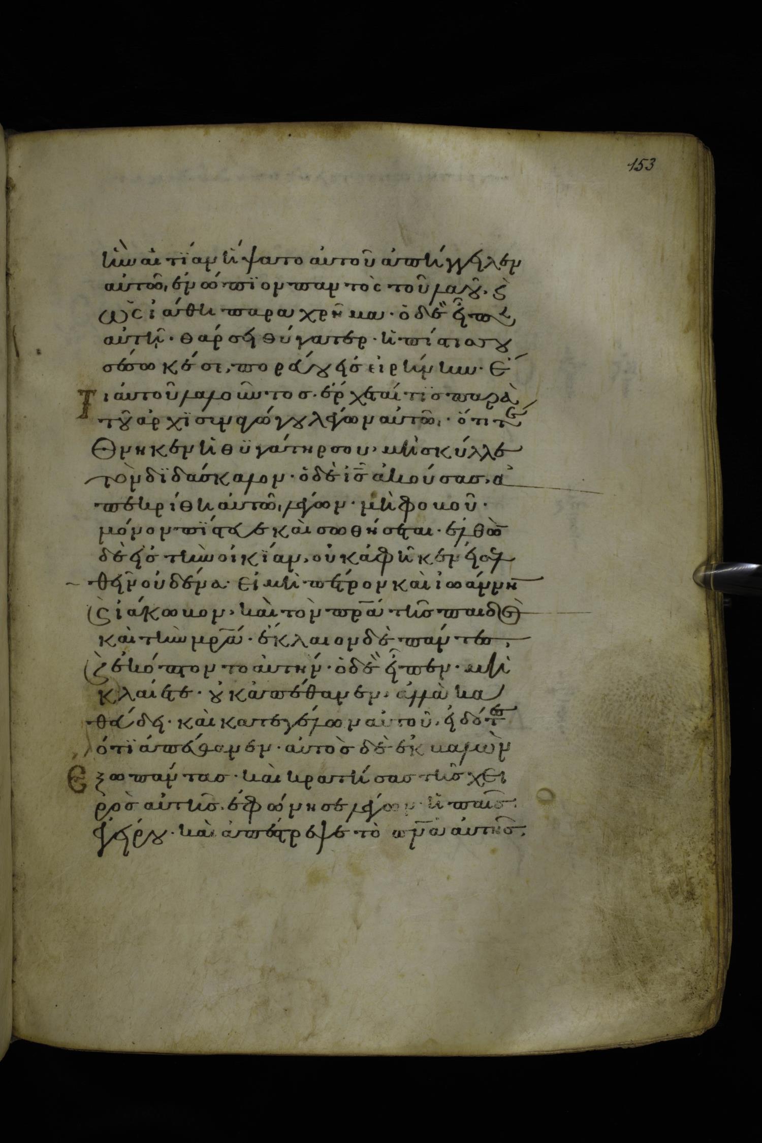 Twelfth century minuscule of the Gospels on parchment; 277 leaves, 1 column, 22 lines per column. Images were taken at the National Library of Greece in Athens.