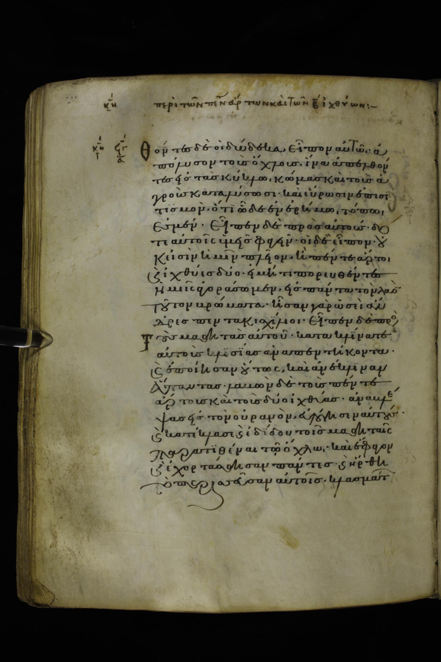 Twelfth century minuscule of the Gospels on parchment; 277 leaves, 1 column, 22 lines per column. Images were taken at the National Library of Greece in Athens.