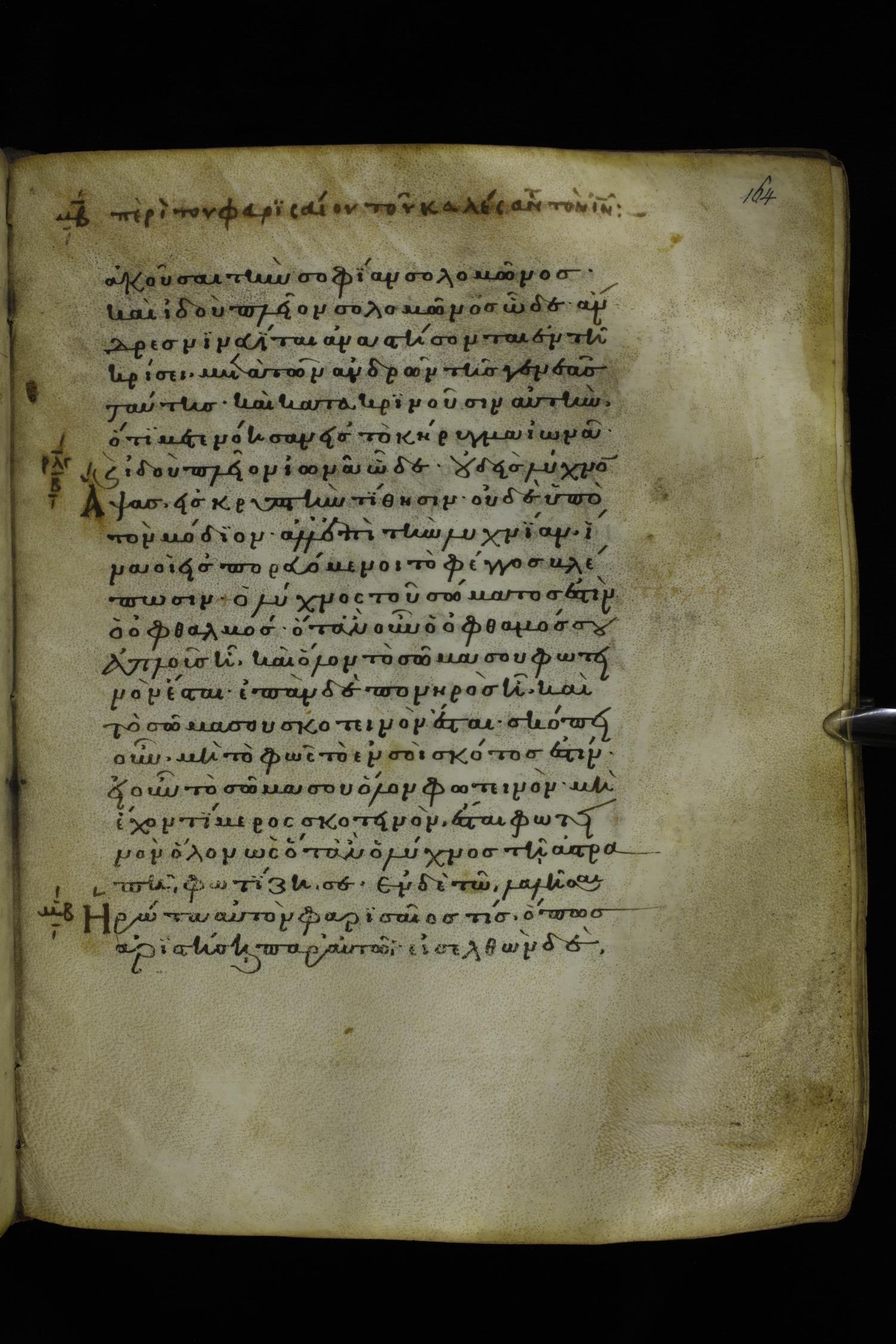 Twelfth century minuscule of the Gospels on parchment; 277 leaves, 1 column, 22 lines per column. Images were taken at the National Library of Greece in Athens.