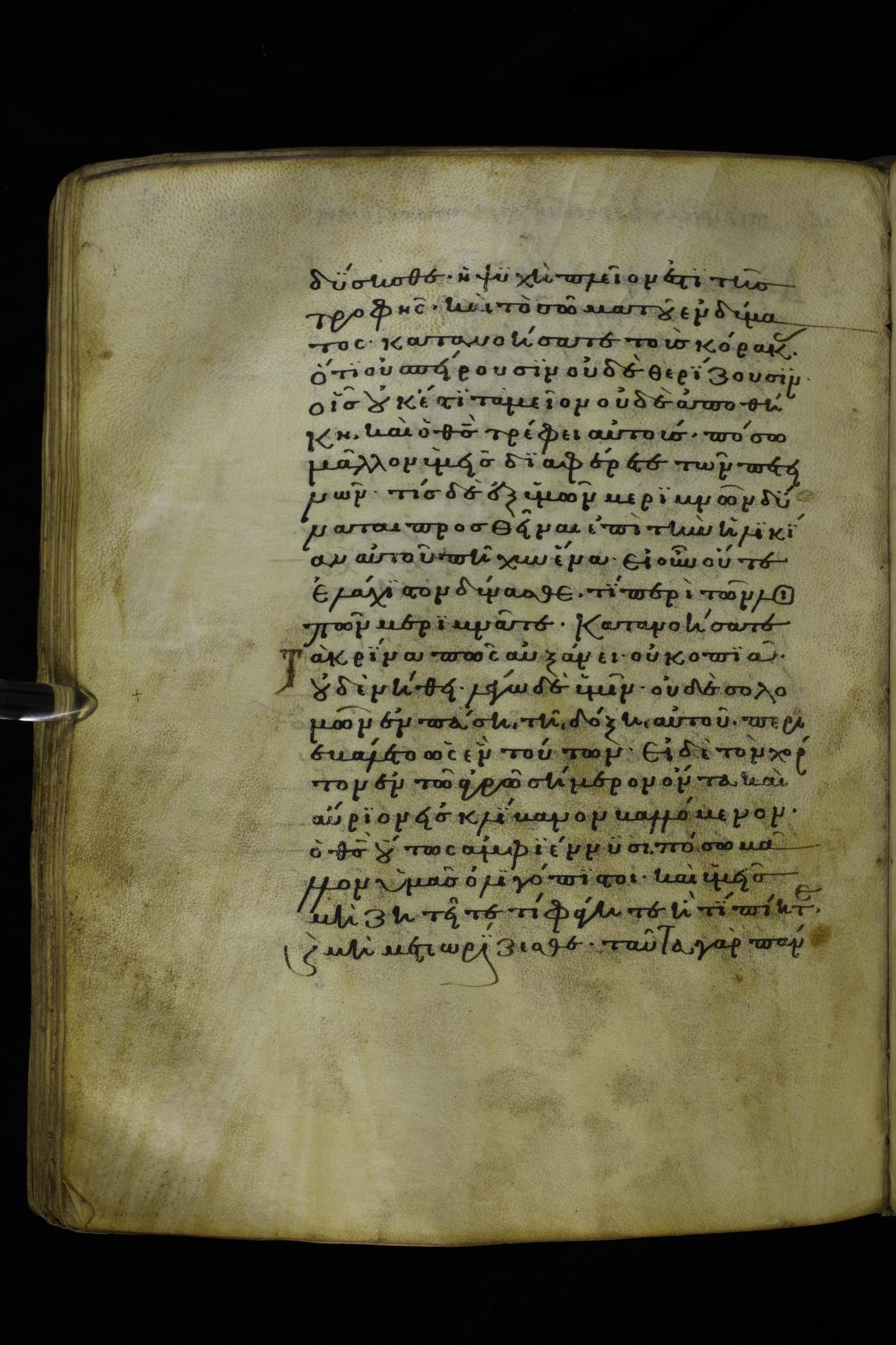 Twelfth century minuscule of the Gospels on parchment; 277 leaves, 1 column, 22 lines per column. Images were taken at the National Library of Greece in Athens.