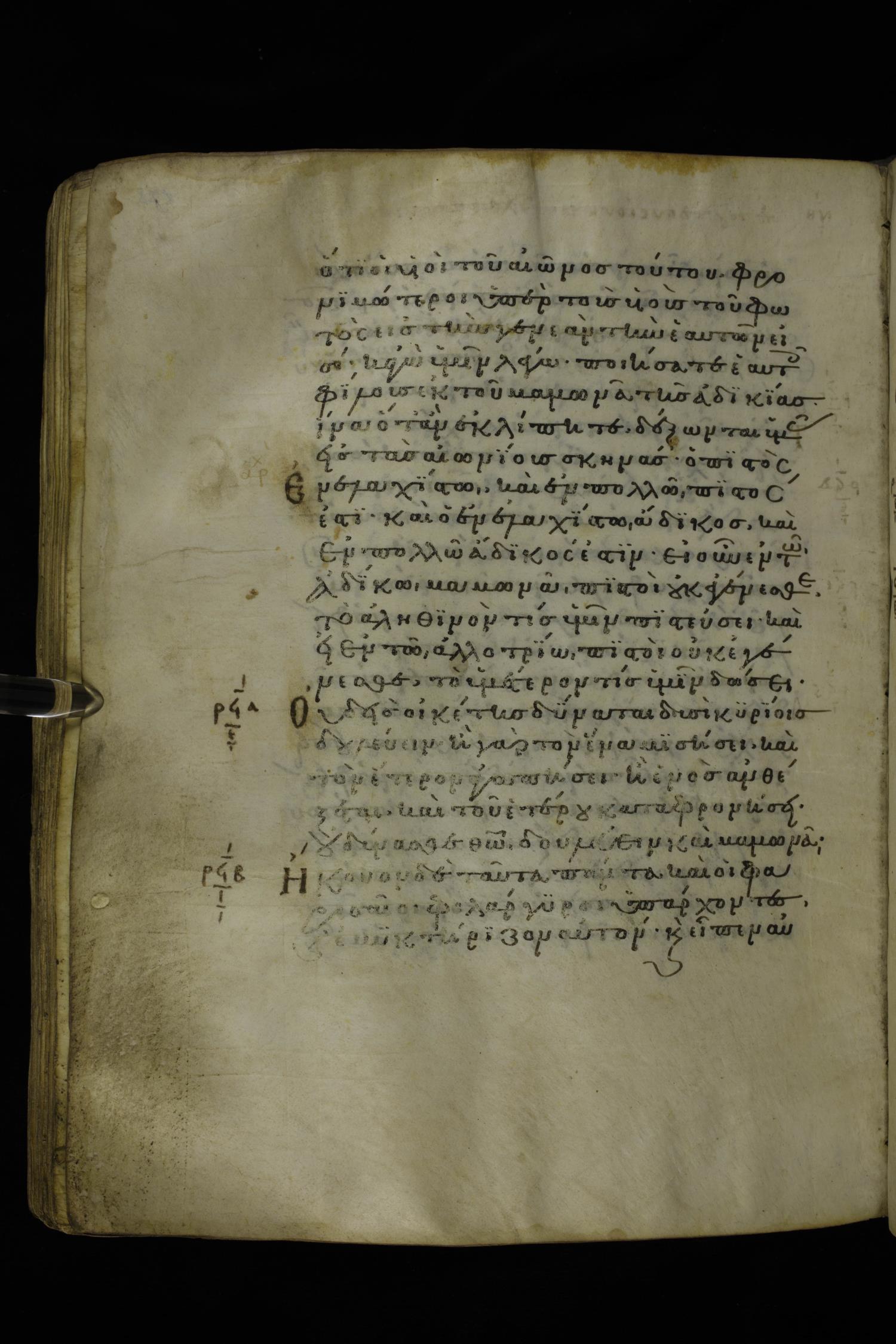 Twelfth century minuscule of the Gospels on parchment; 277 leaves, 1 column, 22 lines per column. Images were taken at the National Library of Greece in Athens.