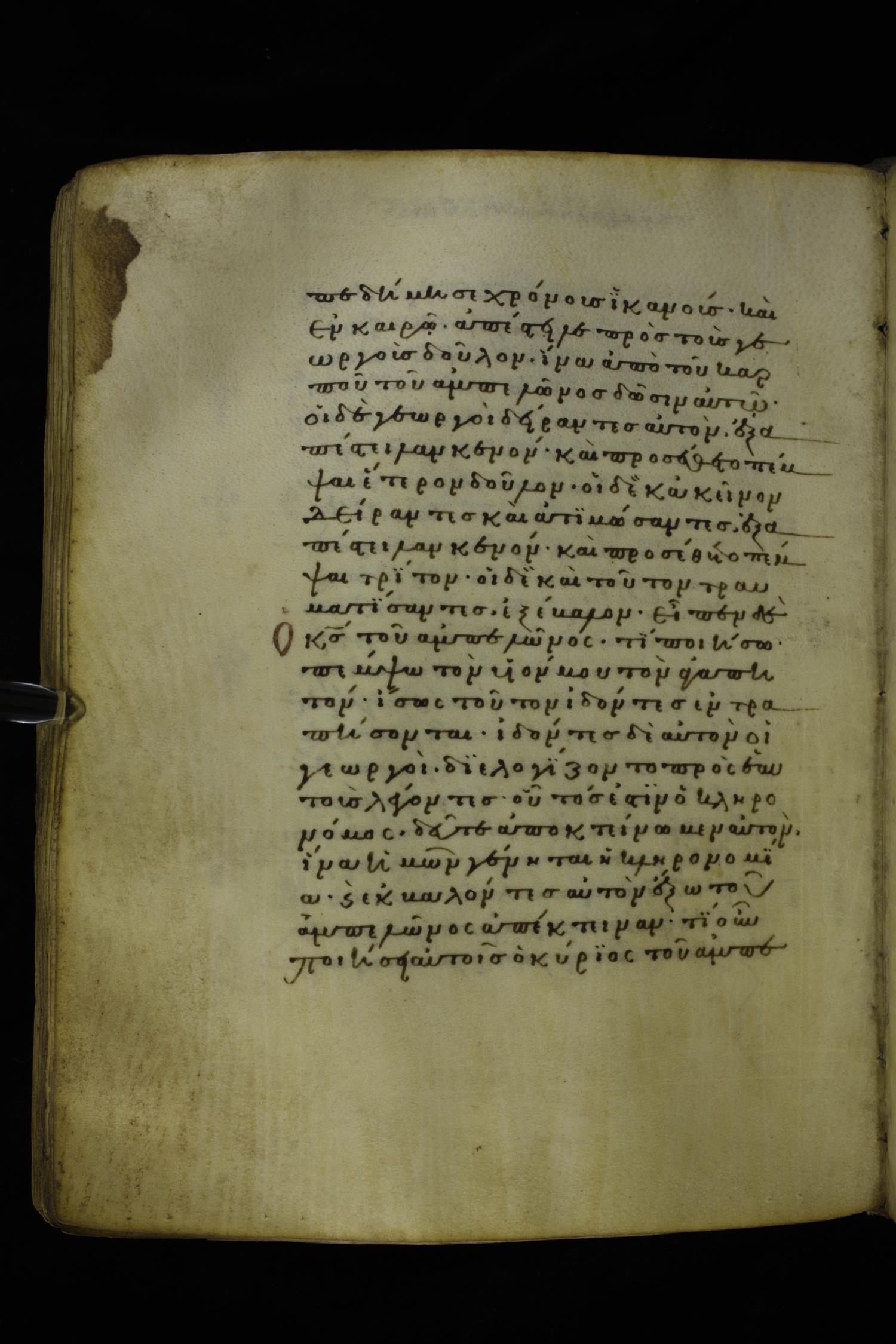 Twelfth century minuscule of the Gospels on parchment; 277 leaves, 1 column, 22 lines per column. Images were taken at the National Library of Greece in Athens.
