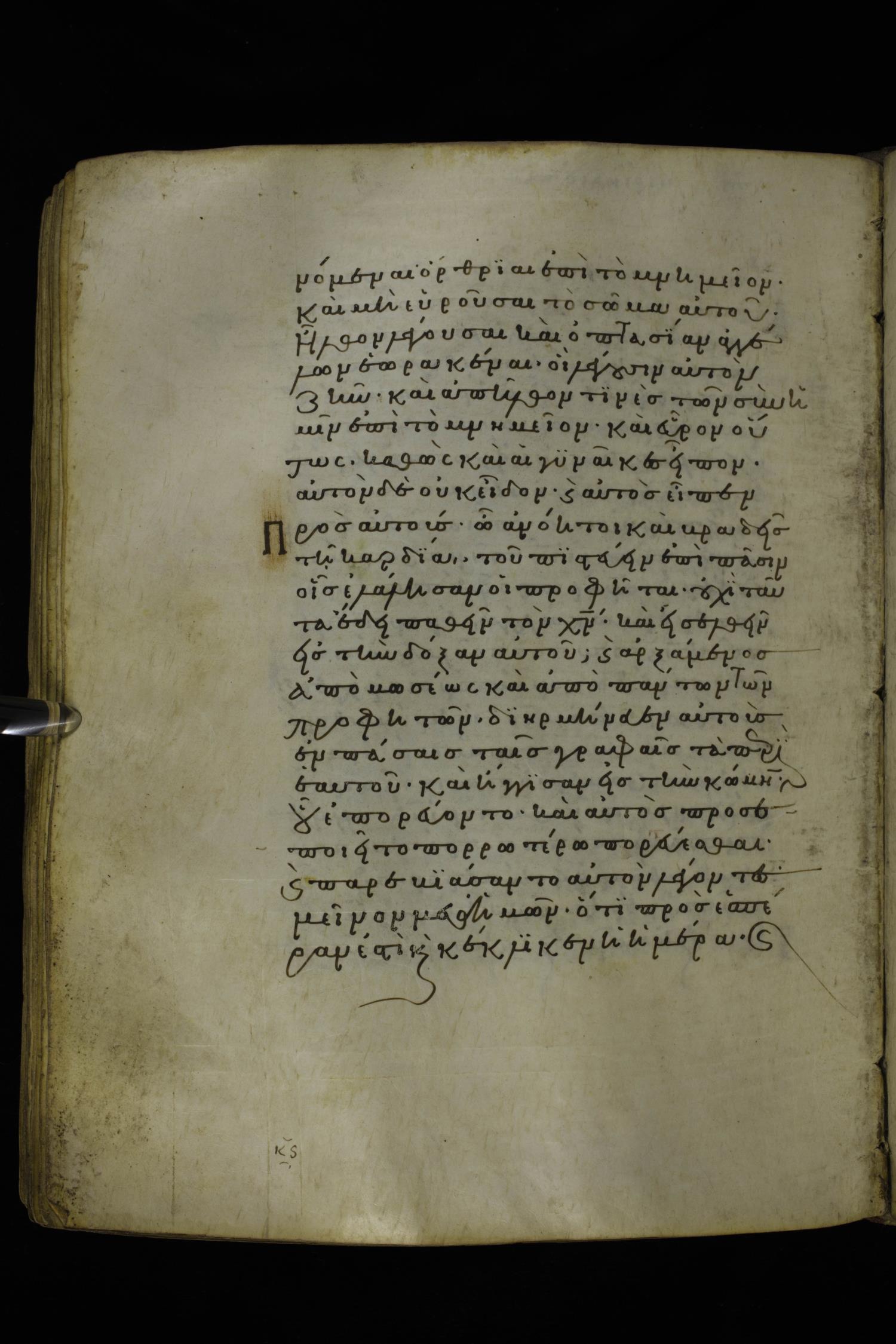 Twelfth century minuscule of the Gospels on parchment; 277 leaves, 1 column, 22 lines per column. Images were taken at the National Library of Greece in Athens.