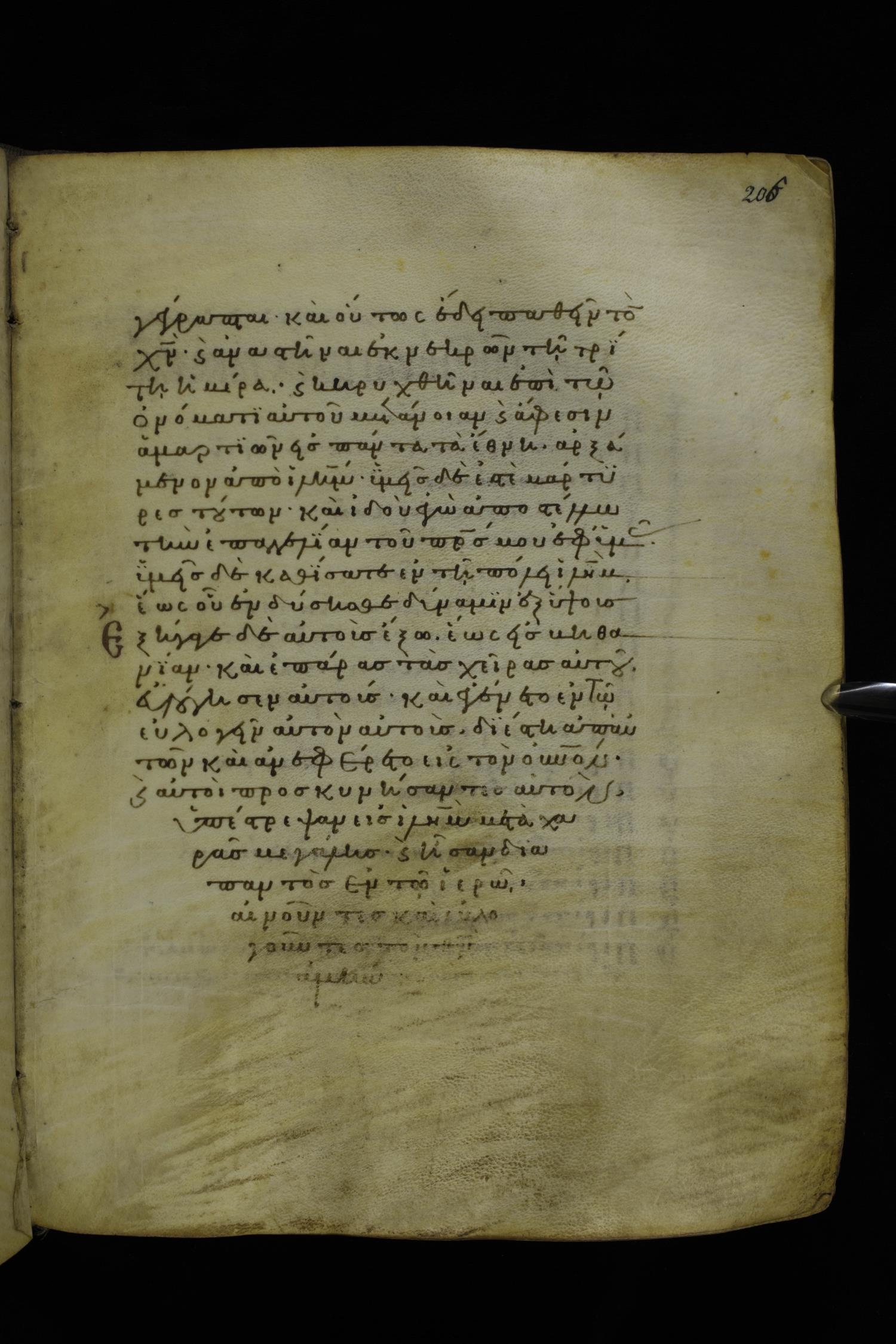 Twelfth century minuscule of the Gospels on parchment; 277 leaves, 1 column, 22 lines per column. Images were taken at the National Library of Greece in Athens.