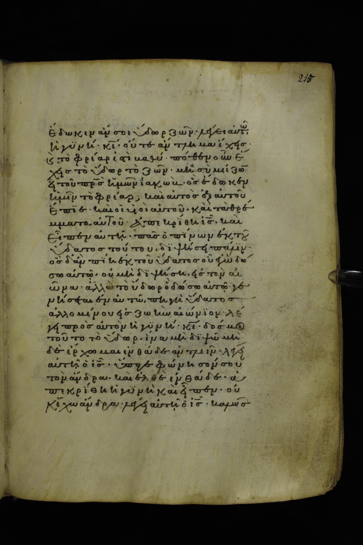 Twelfth century minuscule of the Gospels on parchment; 277 leaves, 1 column, 22 lines per column. Images were taken at the National Library of Greece in Athens.