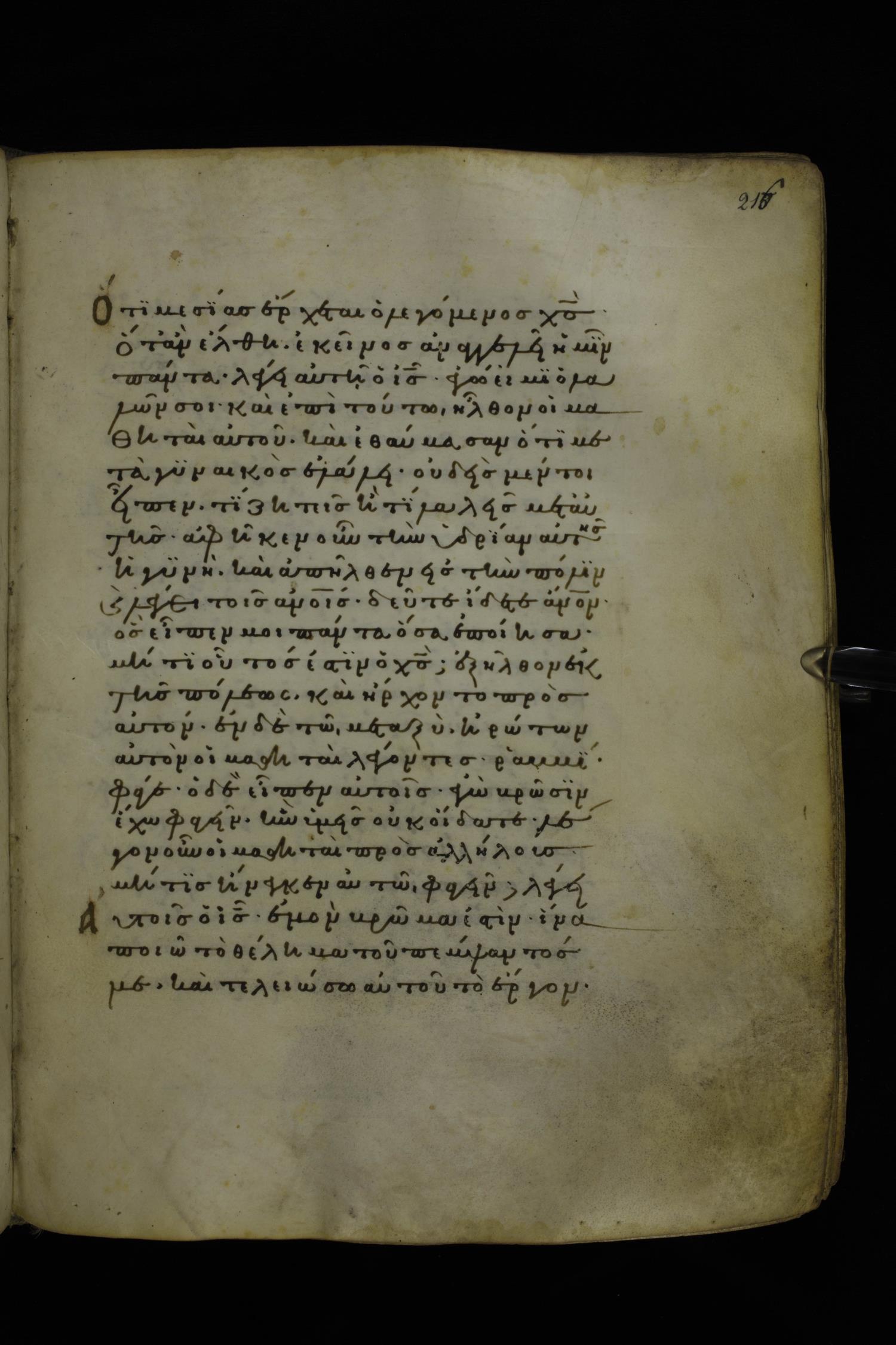 Twelfth century minuscule of the Gospels on parchment; 277 leaves, 1 column, 22 lines per column. Images were taken at the National Library of Greece in Athens.