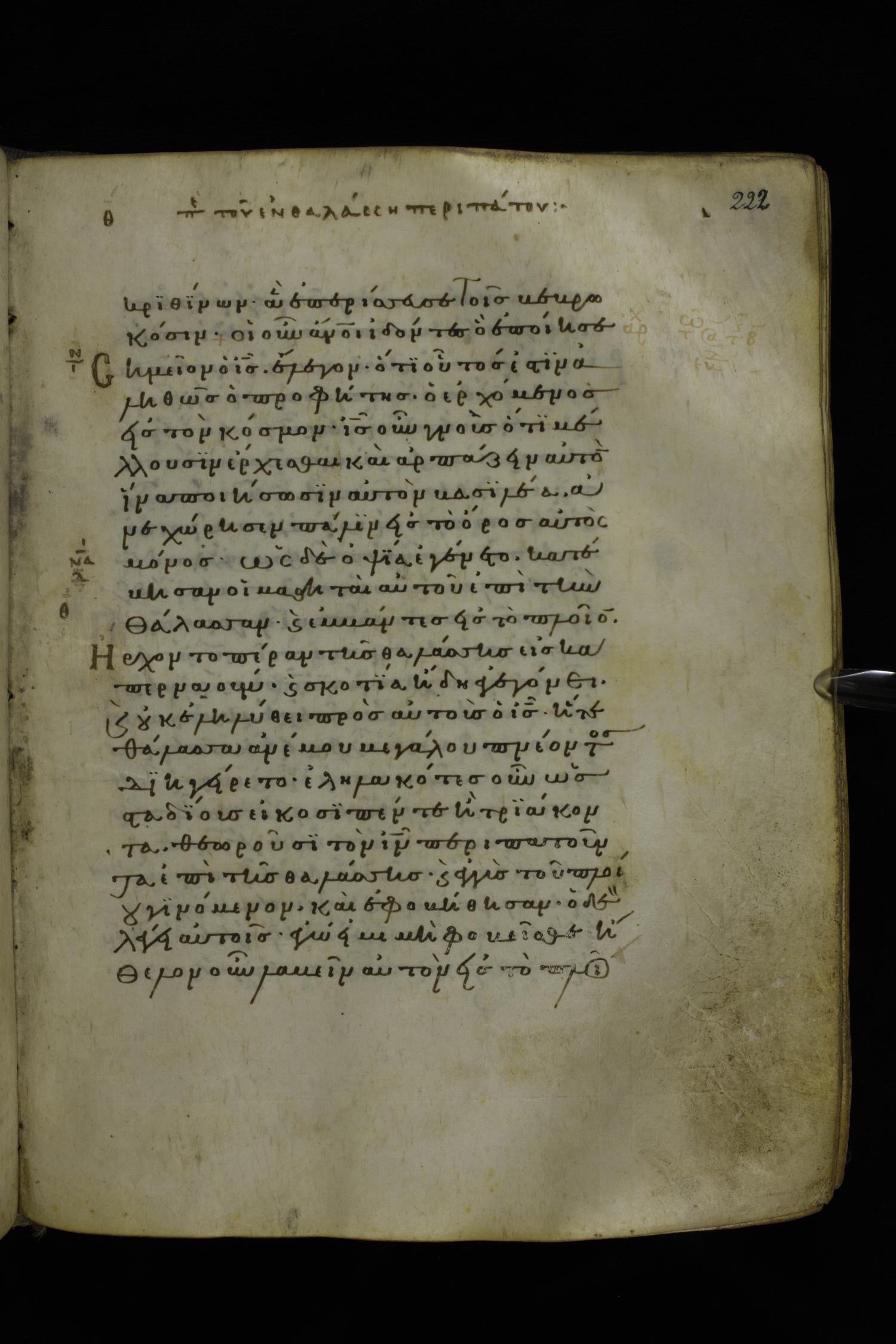 Twelfth century minuscule of the Gospels on parchment; 277 leaves, 1 column, 22 lines per column. Images were taken at the National Library of Greece in Athens.