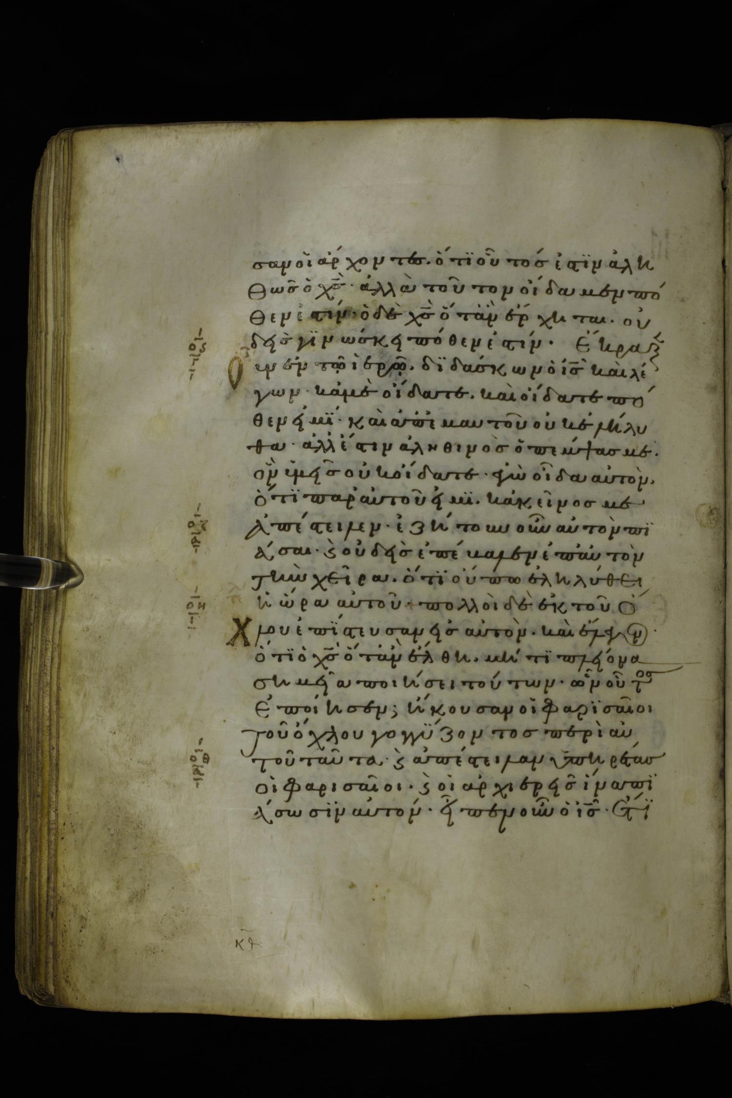 Twelfth century minuscule of the Gospels on parchment; 277 leaves, 1 column, 22 lines per column. Images were taken at the National Library of Greece in Athens.