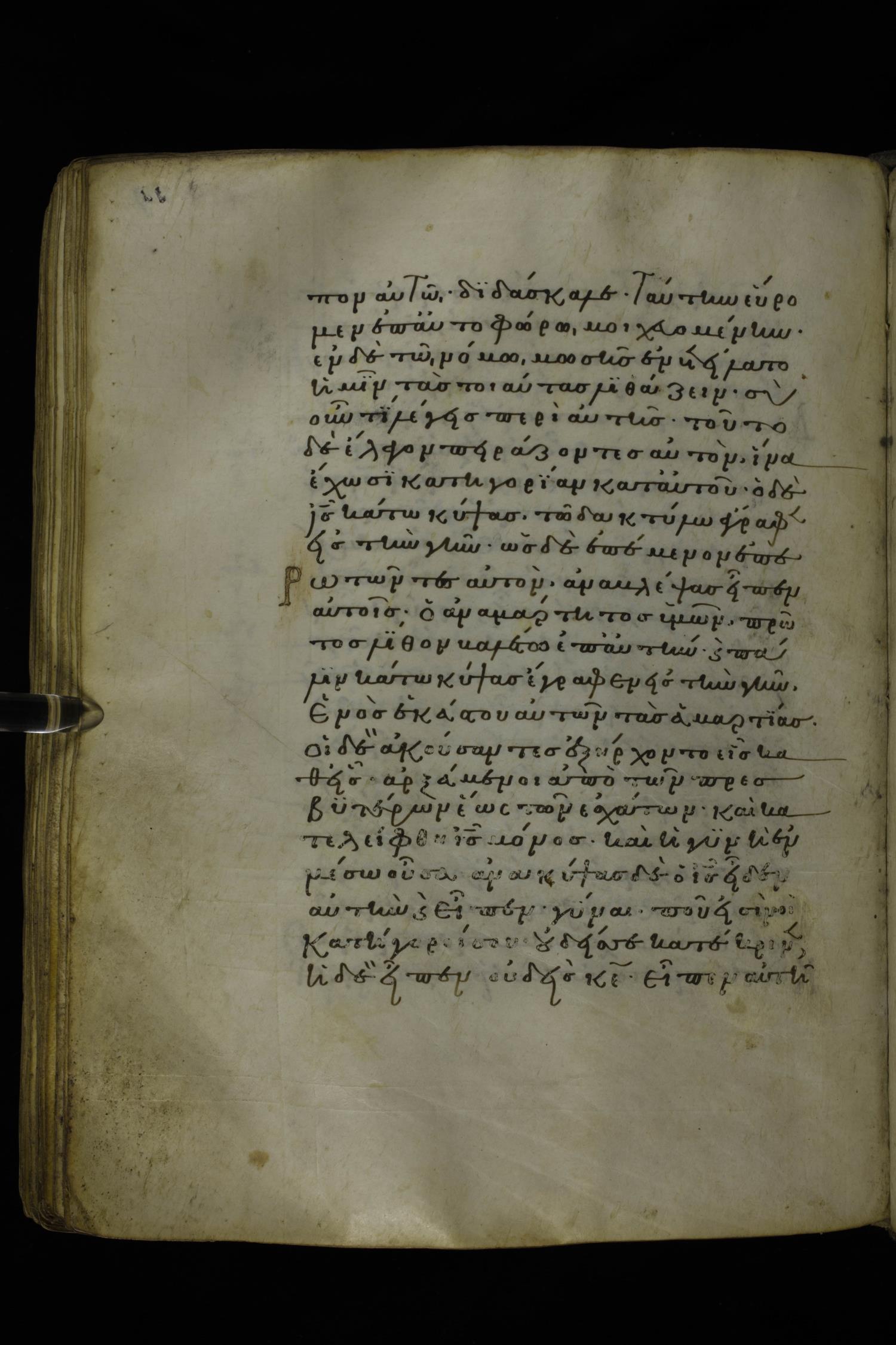 Twelfth century minuscule of the Gospels on parchment; 277 leaves, 1 column, 22 lines per column. Images were taken at the National Library of Greece in Athens.