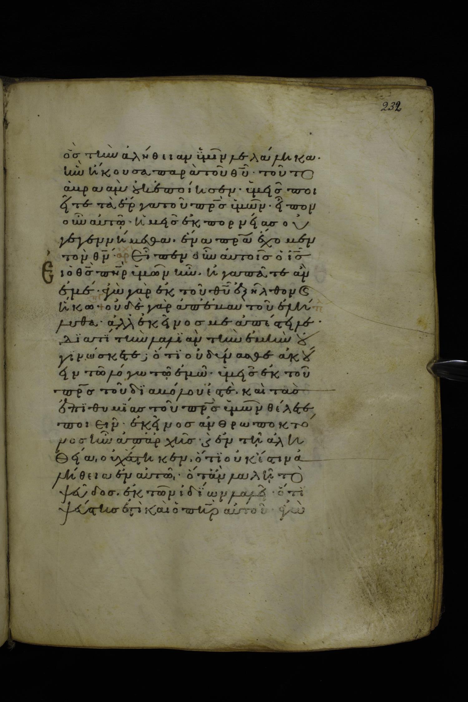 Twelfth century minuscule of the Gospels on parchment; 277 leaves, 1 column, 22 lines per column. Images were taken at the National Library of Greece in Athens.