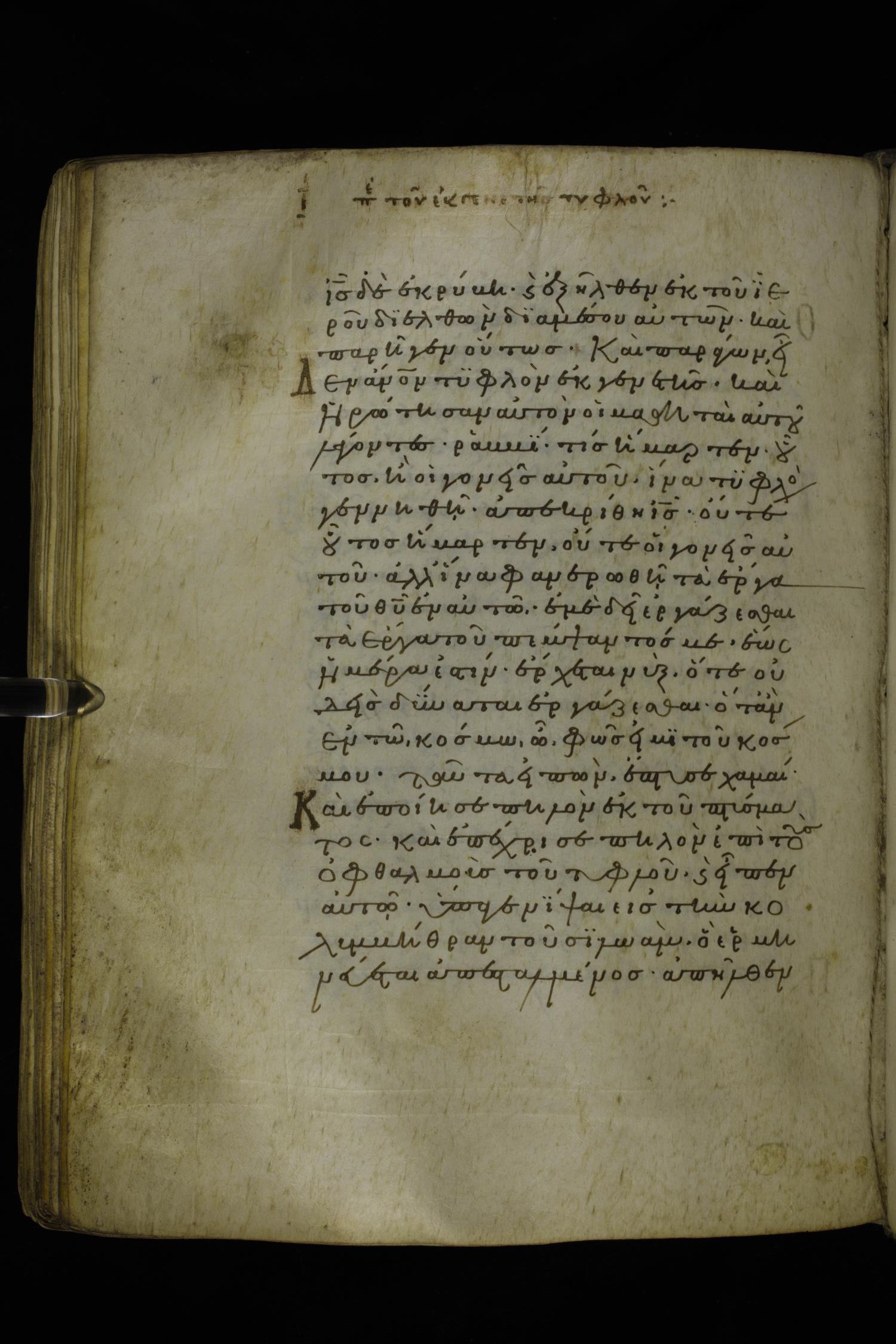 Twelfth century minuscule of the Gospels on parchment; 277 leaves, 1 column, 22 lines per column. Images were taken at the National Library of Greece in Athens.