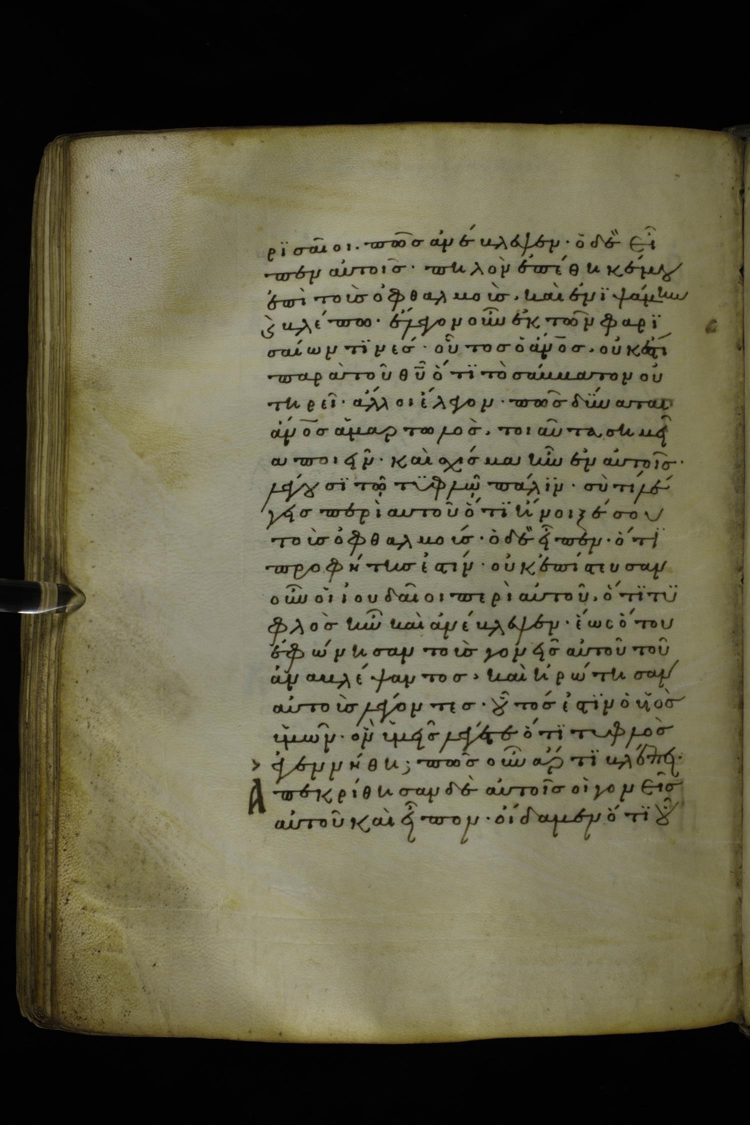 Twelfth century minuscule of the Gospels on parchment; 277 leaves, 1 column, 22 lines per column. Images were taken at the National Library of Greece in Athens.