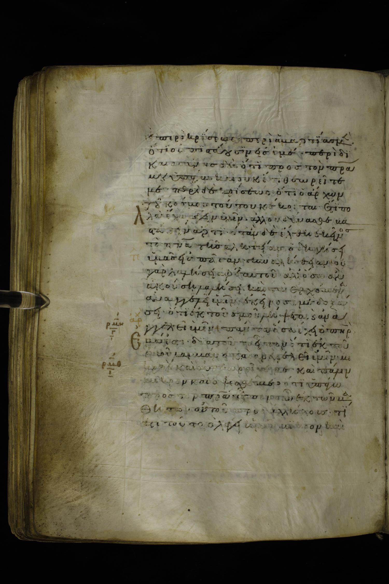 Twelfth century minuscule of the Gospels on parchment; 277 leaves, 1 column, 22 lines per column. Images were taken at the National Library of Greece in Athens.