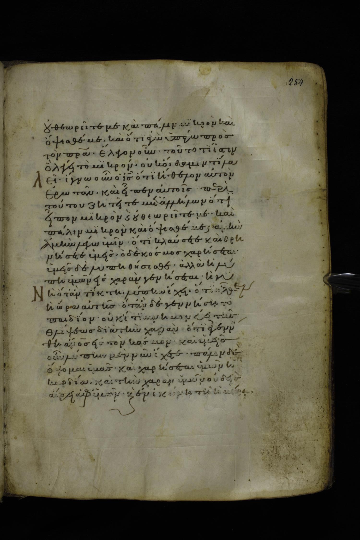 Twelfth century minuscule of the Gospels on parchment; 277 leaves, 1 column, 22 lines per column. Images were taken at the National Library of Greece in Athens.