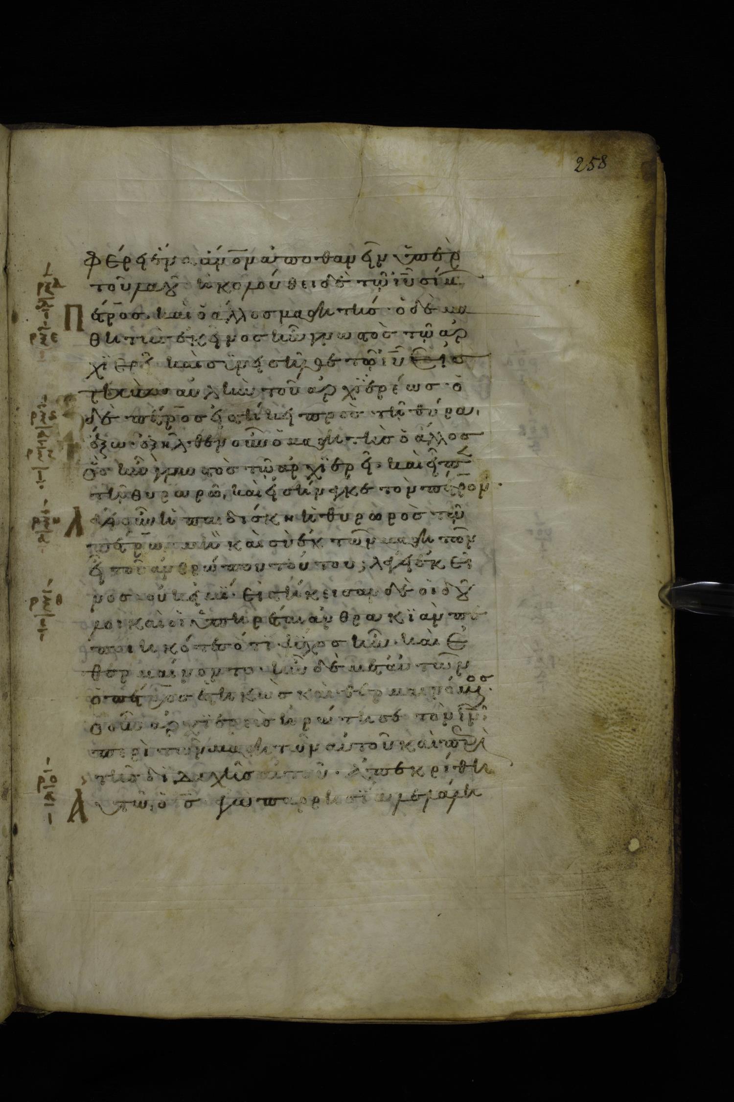 Twelfth century minuscule of the Gospels on parchment; 277 leaves, 1 column, 22 lines per column. Images were taken at the National Library of Greece in Athens.