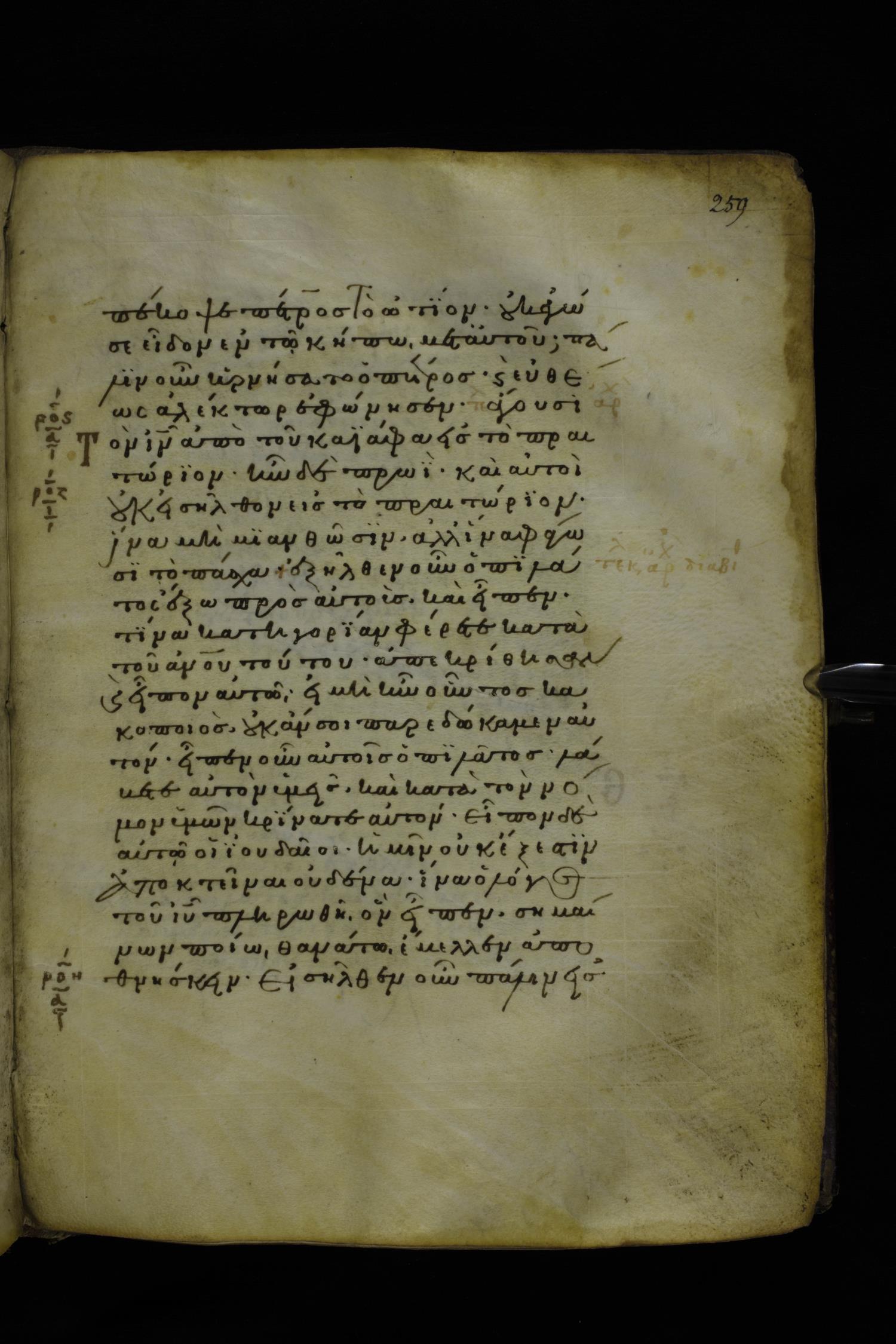 Twelfth century minuscule of the Gospels on parchment; 277 leaves, 1 column, 22 lines per column. Images were taken at the National Library of Greece in Athens.