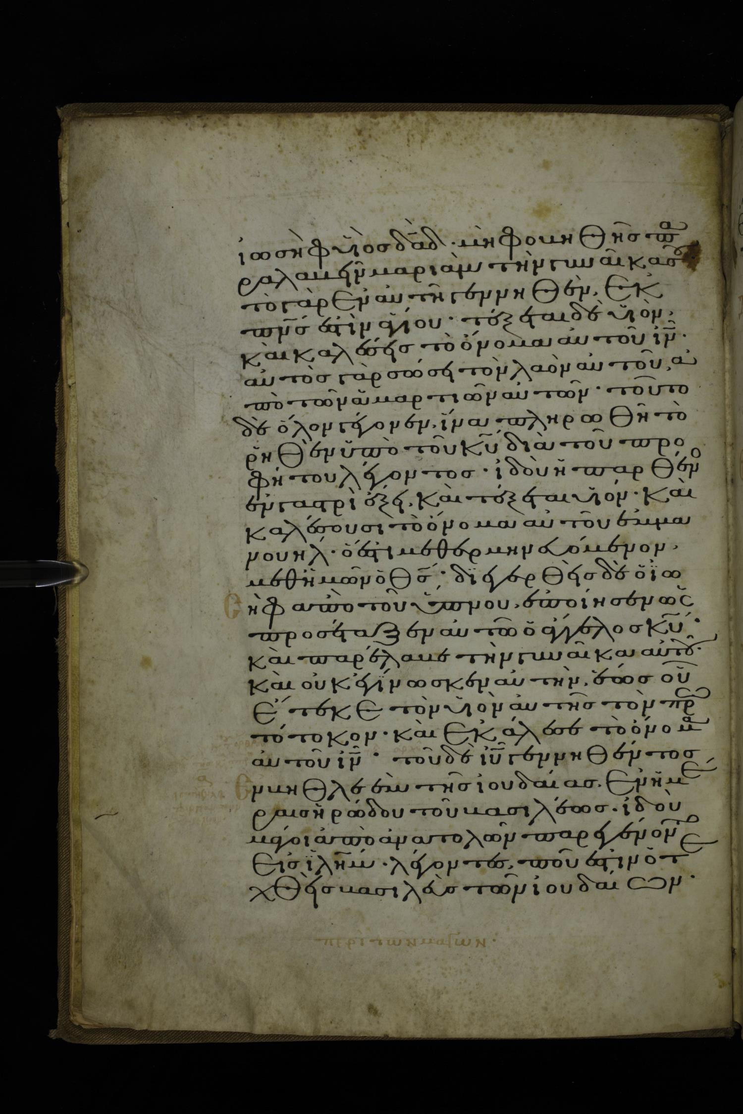 Fourteenth century minuscule of Gospels on parchment; 212 leaves, 1-2 columns, 26-29 lines per column. Images were taken at the National Library of Greece in Athens.