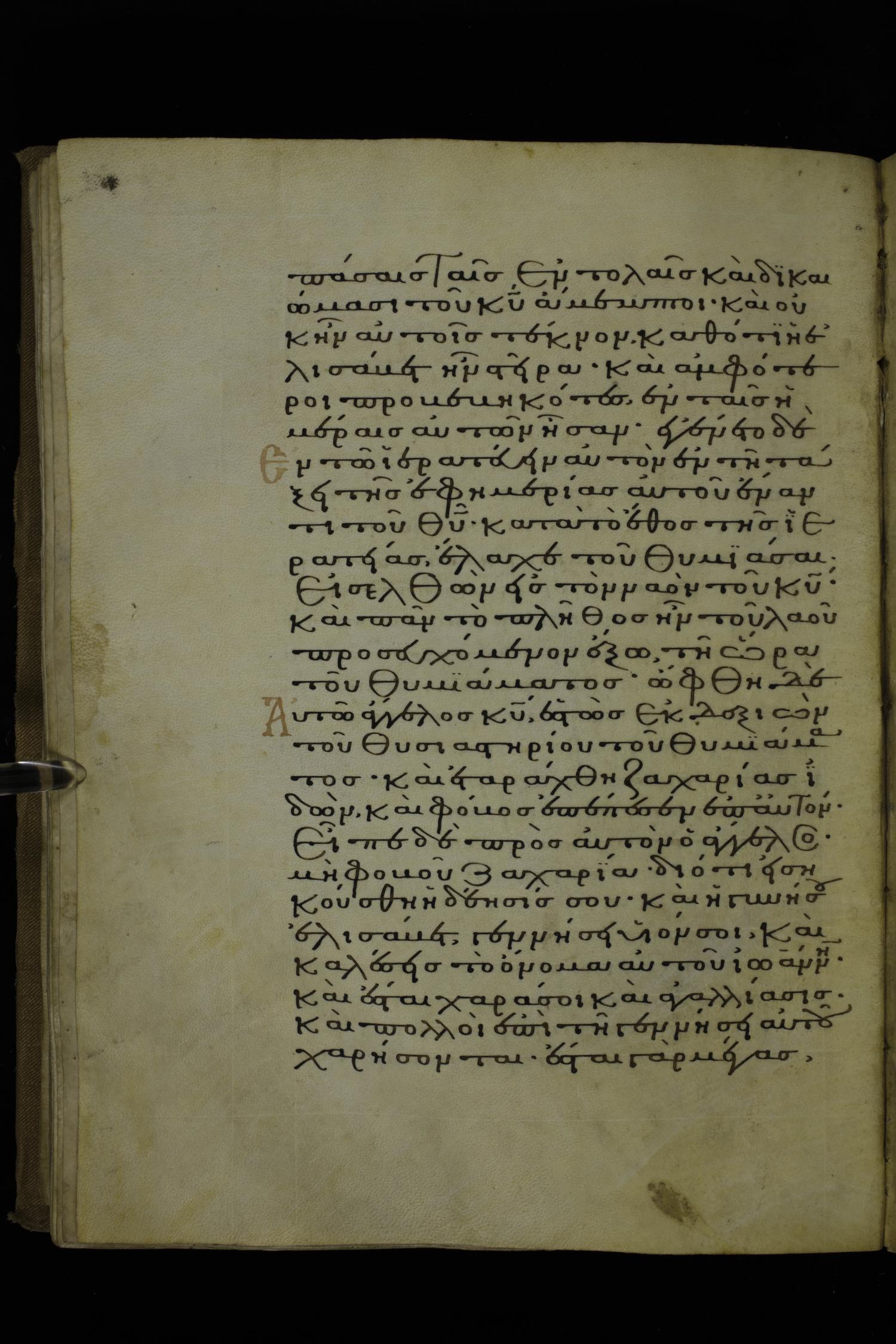 Fourteenth century minuscule of Gospels on parchment; 212 leaves, 1-2 columns, 26-29 lines per column. Images were taken at the National Library of Greece in Athens.