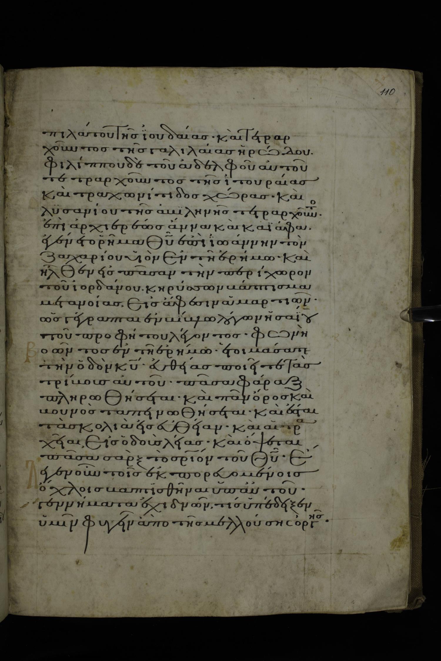 Fourteenth century minuscule of Gospels on parchment; 212 leaves, 1-2 columns, 26-29 lines per column. Images were taken at the National Library of Greece in Athens.