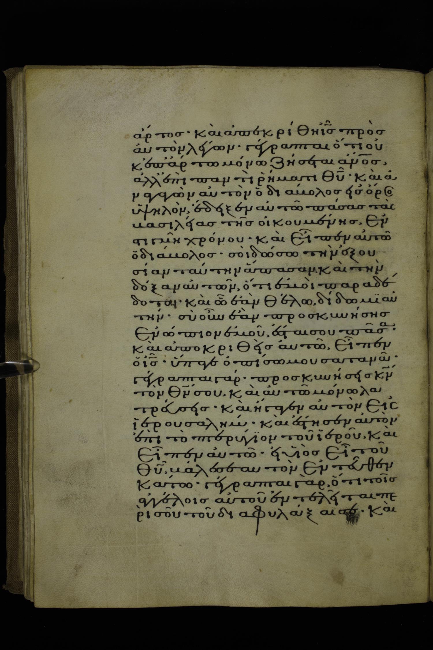 Fourteenth century minuscule of Gospels on parchment; 212 leaves, 1-2 columns, 26-29 lines per column. Images were taken at the National Library of Greece in Athens.