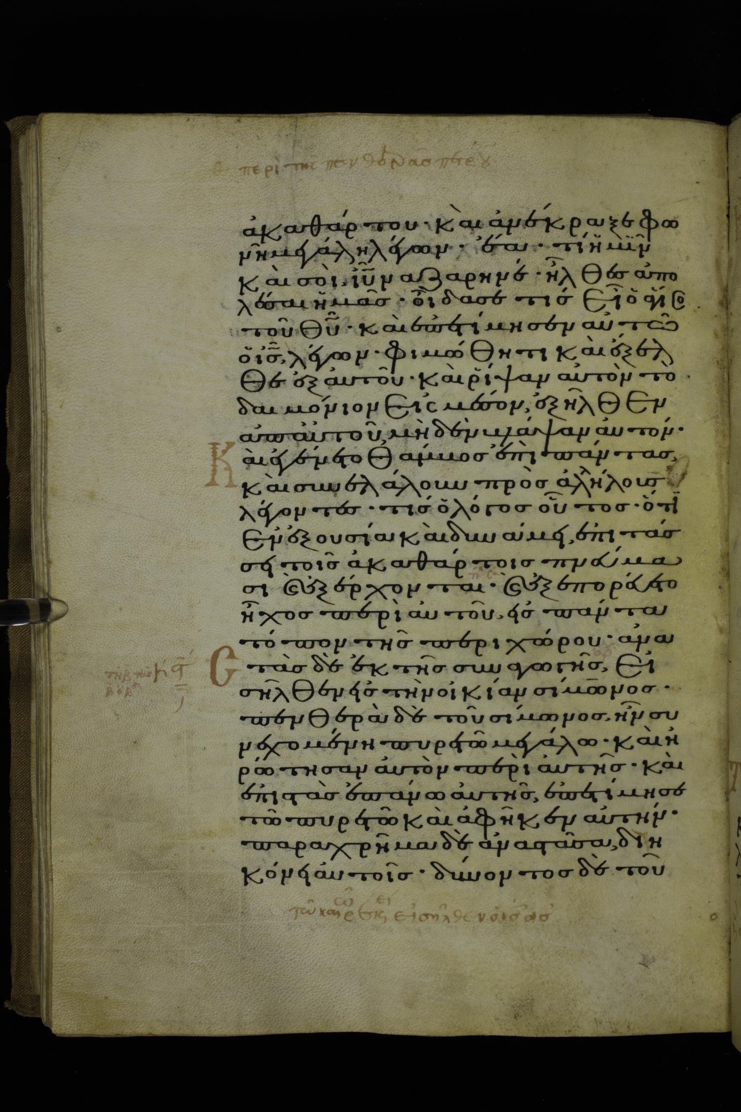 Fourteenth century minuscule of Gospels on parchment; 212 leaves, 1-2 columns, 26-29 lines per column. Images were taken at the National Library of Greece in Athens.