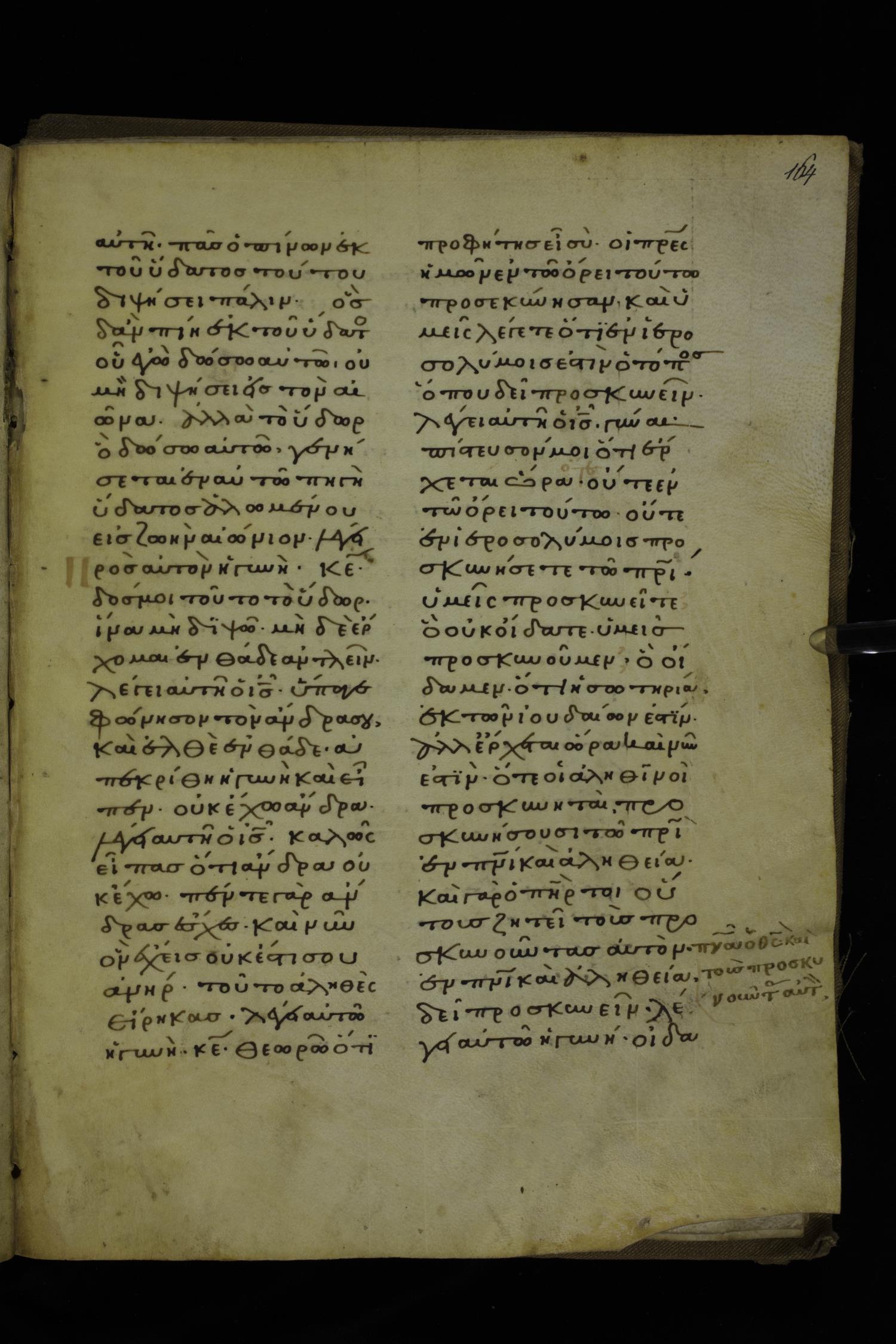 Fourteenth century minuscule of Gospels on parchment; 212 leaves, 1-2 columns, 26-29 lines per column. Images were taken at the National Library of Greece in Athens.