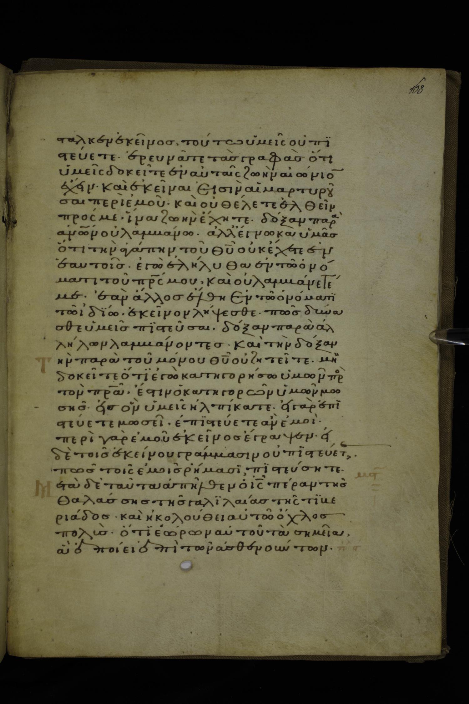Fourteenth century minuscule of Gospels on parchment; 212 leaves, 1-2 columns, 26-29 lines per column. Images were taken at the National Library of Greece in Athens.
