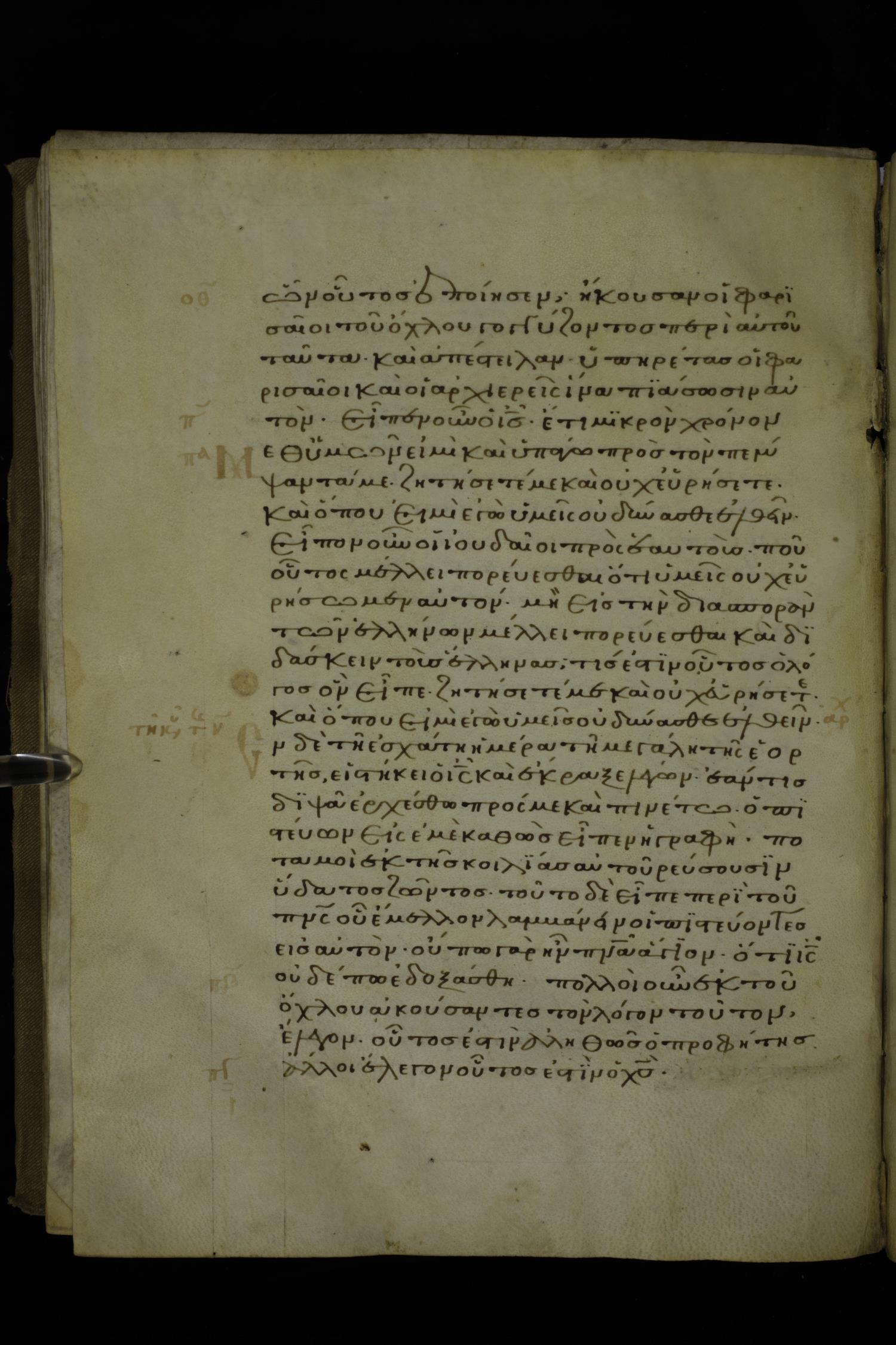 Fourteenth century minuscule of Gospels on parchment; 212 leaves, 1-2 columns, 26-29 lines per column. Images were taken at the National Library of Greece in Athens.