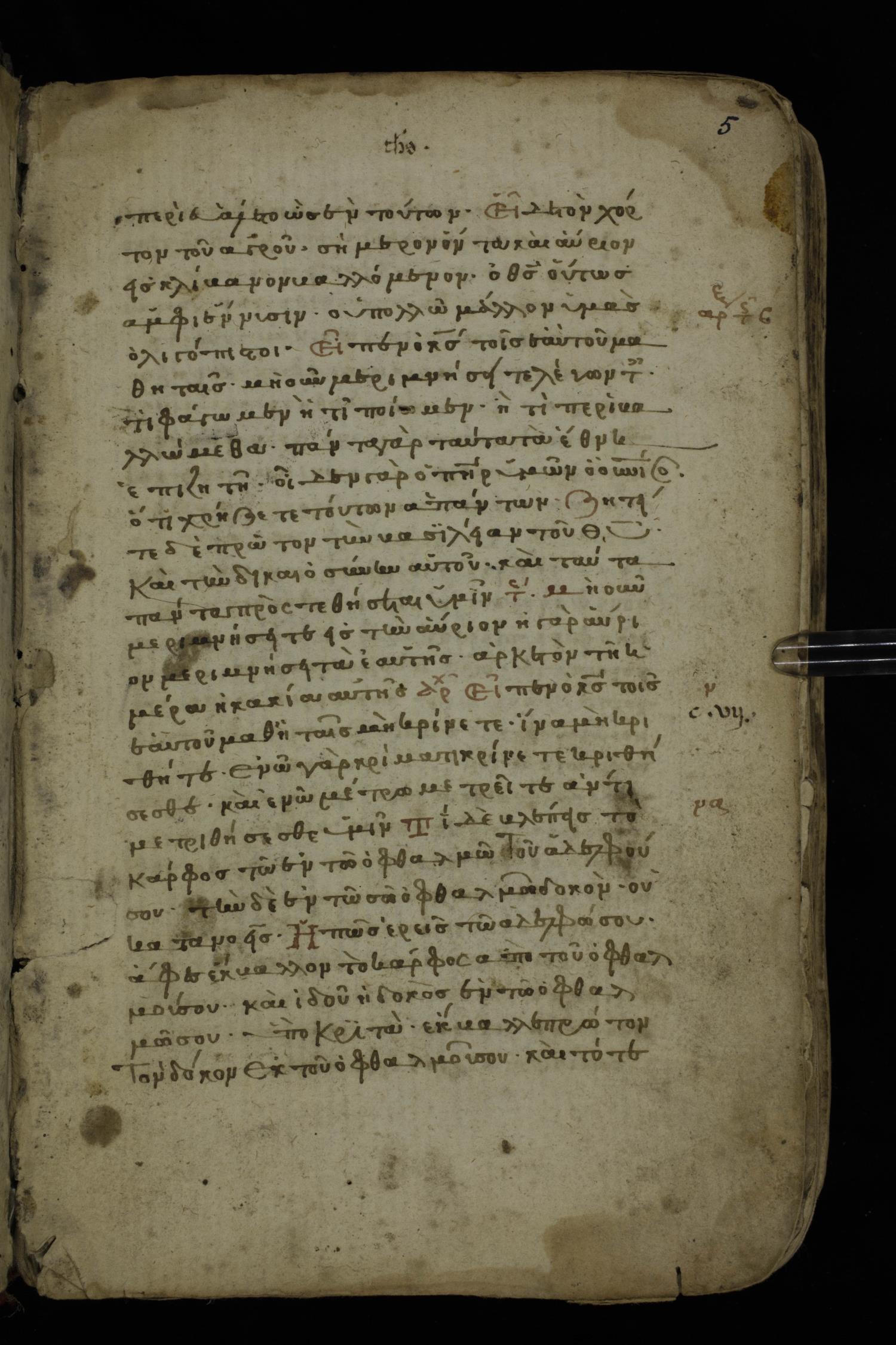 Fourteenth century minuscule of the Gospels on paper; 161 leaves, 1 column, 25-30 lines per column. Images were taken at the National Library of Greece in Athens.