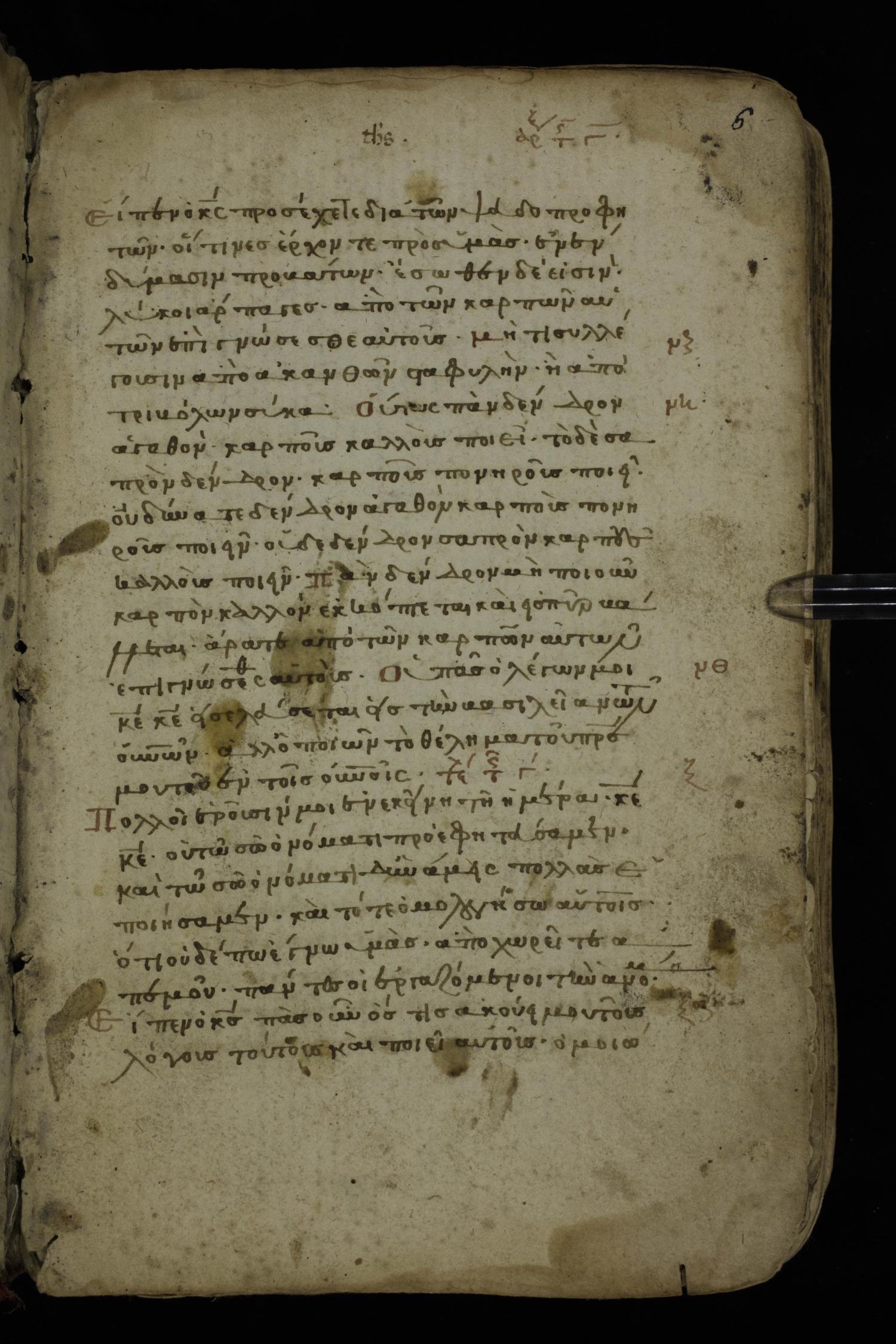 Fourteenth century minuscule of the Gospels on paper; 161 leaves, 1 column, 25-30 lines per column. Images were taken at the National Library of Greece in Athens.