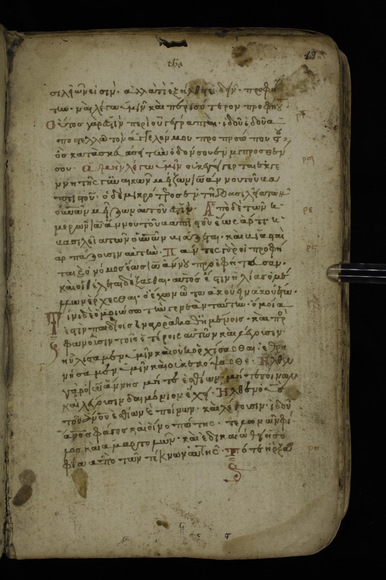 Fourteenth century minuscule of the Gospels on paper; 161 leaves, 1 column, 25-30 lines per column. Images were taken at the National Library of Greece in Athens.