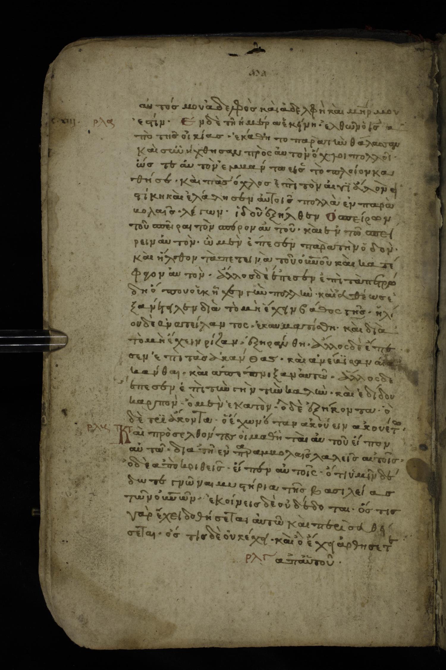 Fourteenth century minuscule of the Gospels on paper; 161 leaves, 1 column, 25-30 lines per column. Images were taken at the National Library of Greece in Athens.