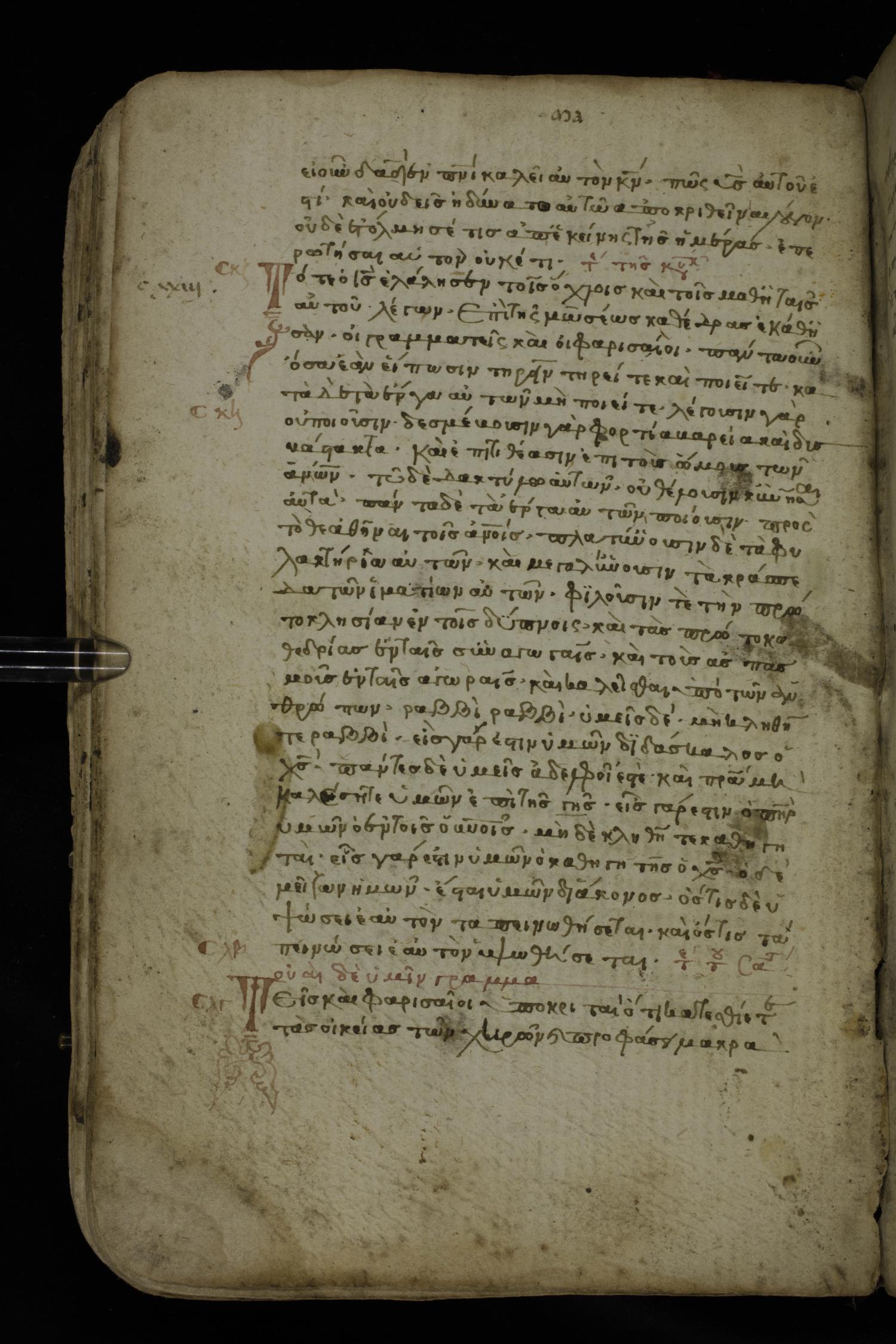 Fourteenth century minuscule of the Gospels on paper; 161 leaves, 1 column, 25-30 lines per column. Images were taken at the National Library of Greece in Athens.