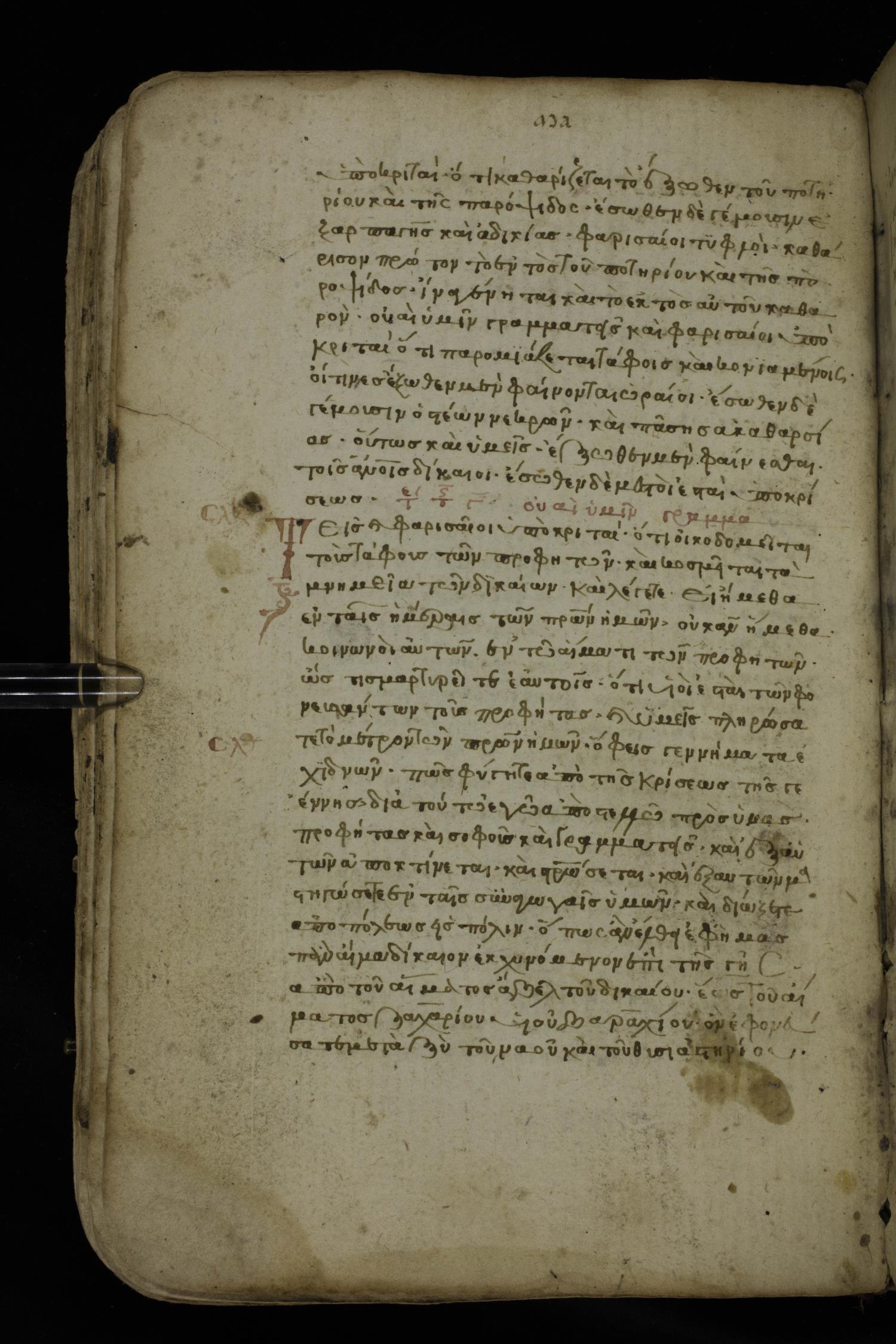 Fourteenth century minuscule of the Gospels on paper; 161 leaves, 1 column, 25-30 lines per column. Images were taken at the National Library of Greece in Athens.