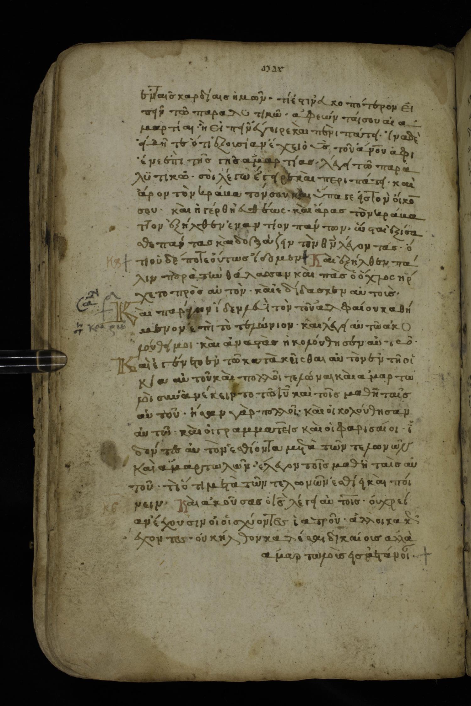 Fourteenth century minuscule of the Gospels on paper; 161 leaves, 1 column, 25-30 lines per column. Images were taken at the National Library of Greece in Athens.