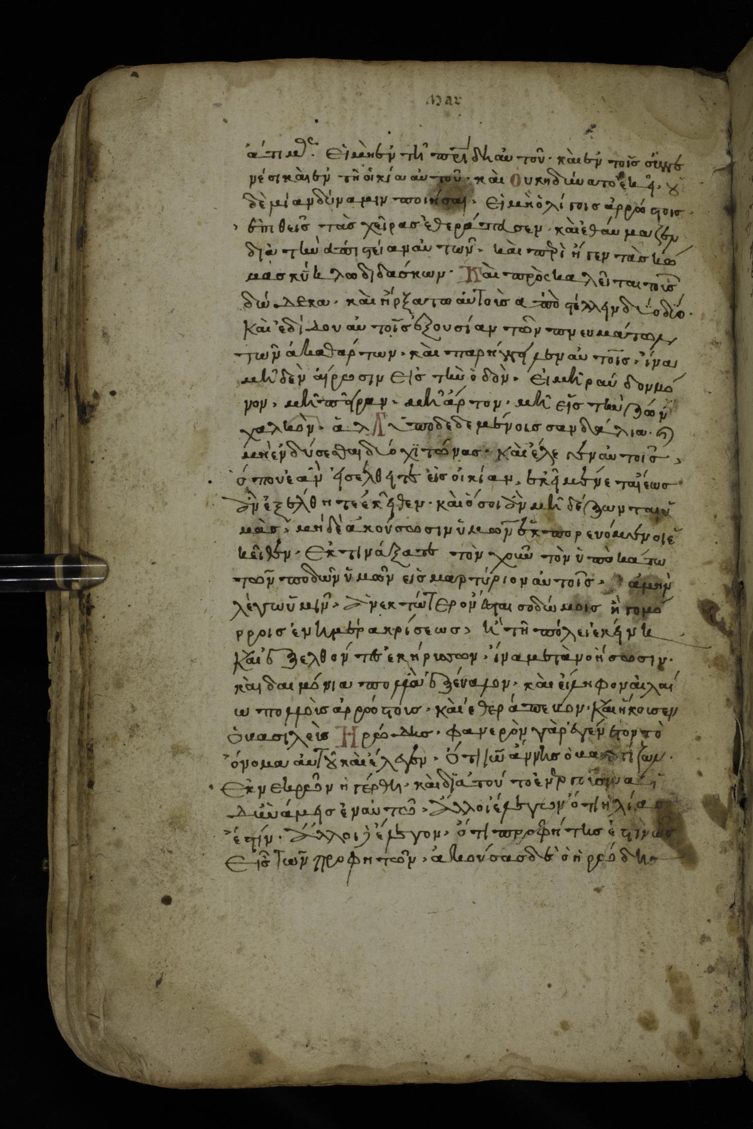 Fourteenth century minuscule of the Gospels on paper; 161 leaves, 1 column, 25-30 lines per column. Images were taken at the National Library of Greece in Athens.