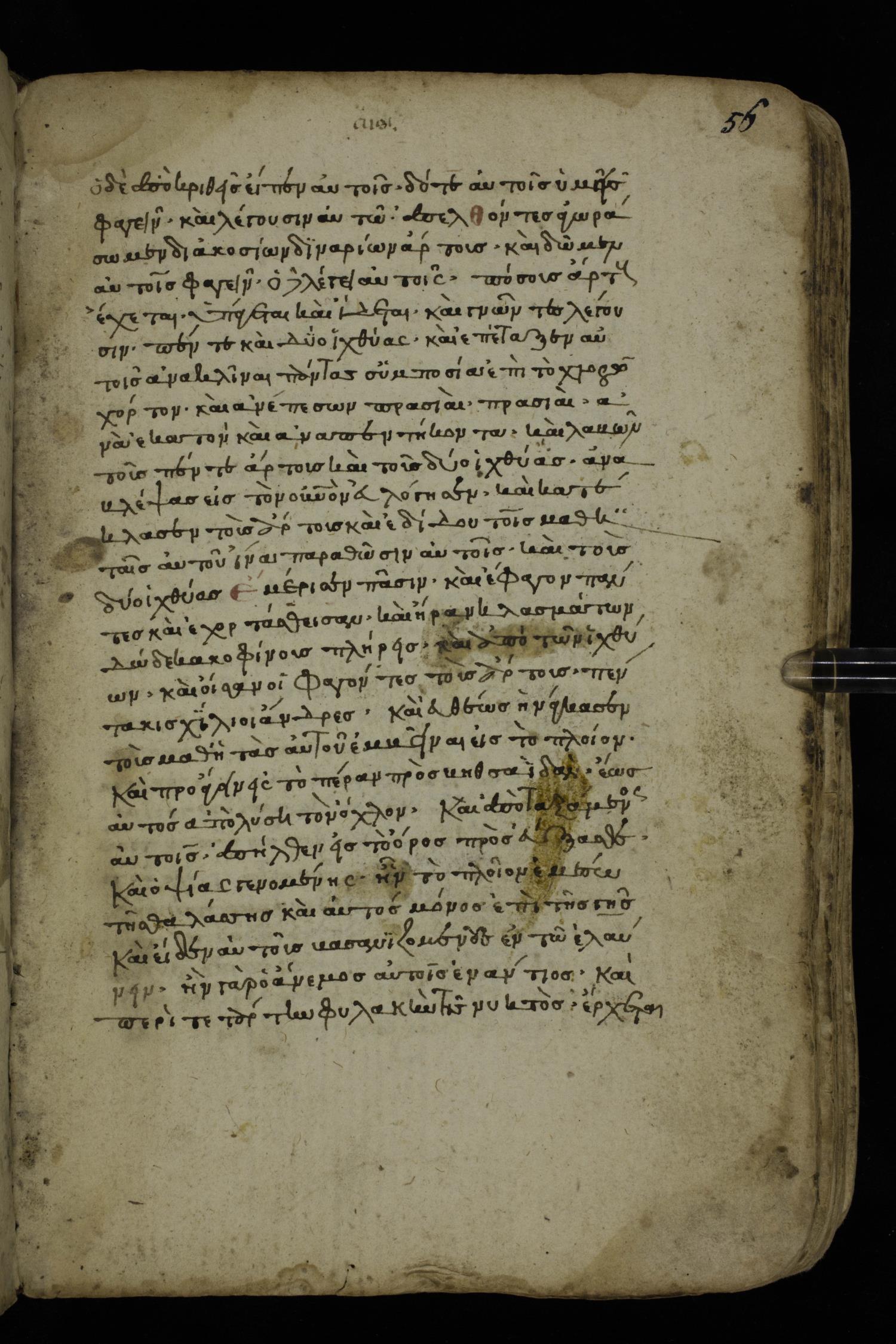 Fourteenth century minuscule of the Gospels on paper; 161 leaves, 1 column, 25-30 lines per column. Images were taken at the National Library of Greece in Athens.