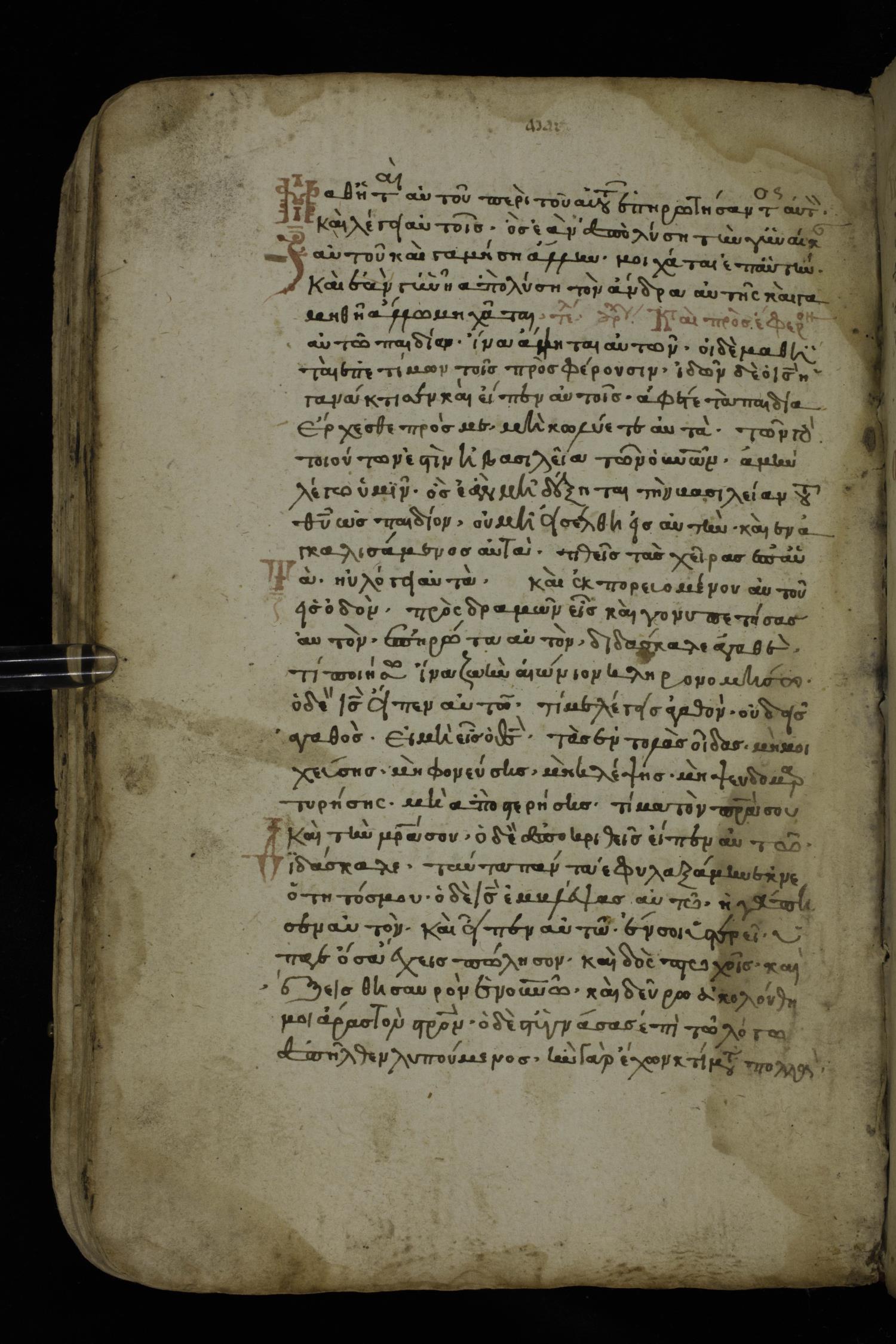 Fourteenth century minuscule of the Gospels on paper; 161 leaves, 1 column, 25-30 lines per column. Images were taken at the National Library of Greece in Athens.