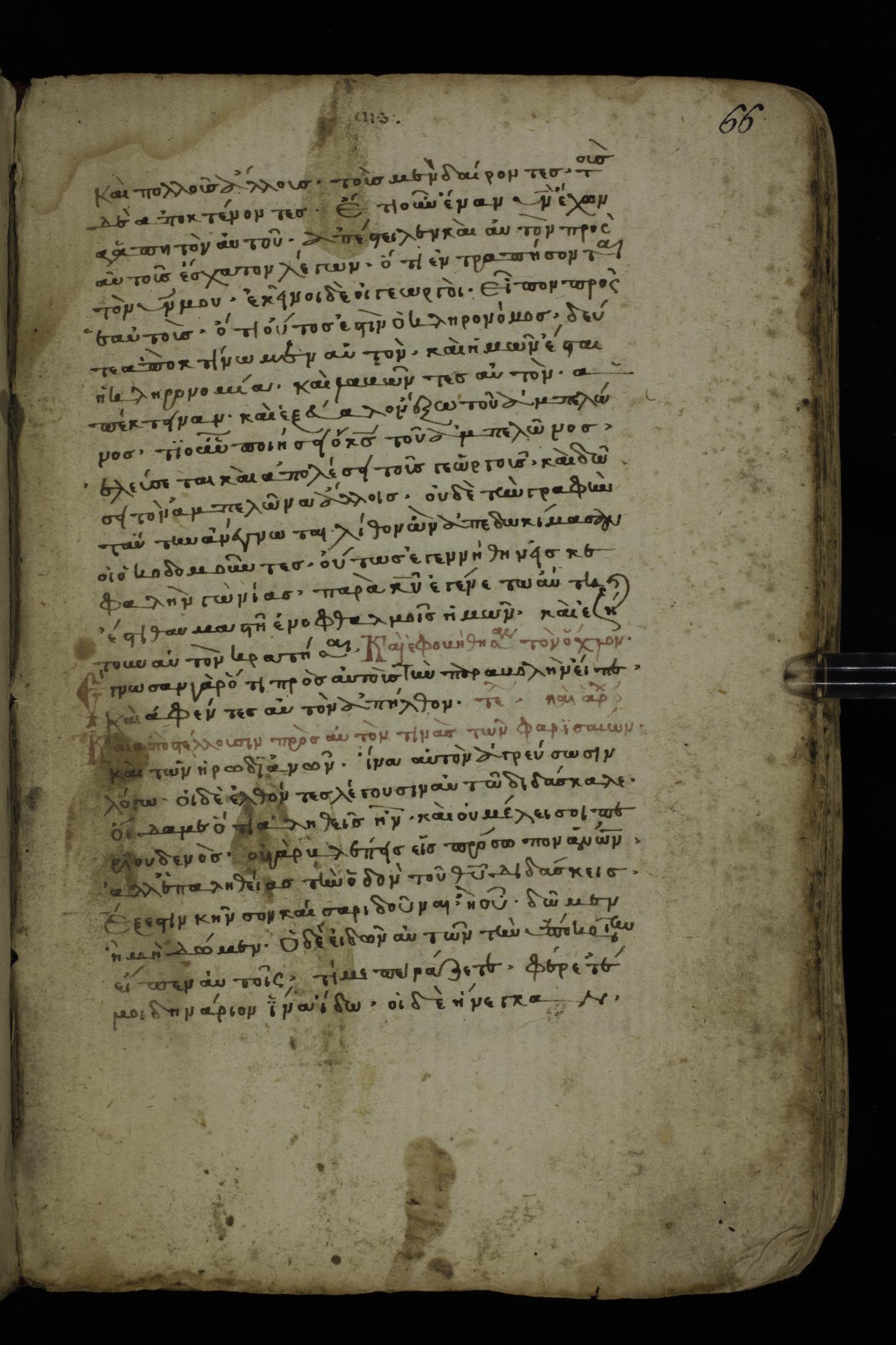 Fourteenth century minuscule of the Gospels on paper; 161 leaves, 1 column, 25-30 lines per column. Images were taken at the National Library of Greece in Athens.
