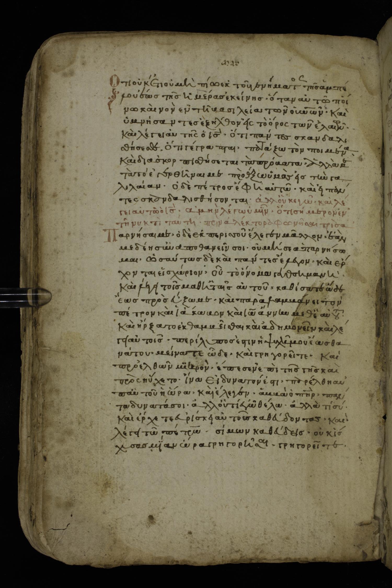 Fourteenth century minuscule of the Gospels on paper; 161 leaves, 1 column, 25-30 lines per column. Images were taken at the National Library of Greece in Athens.