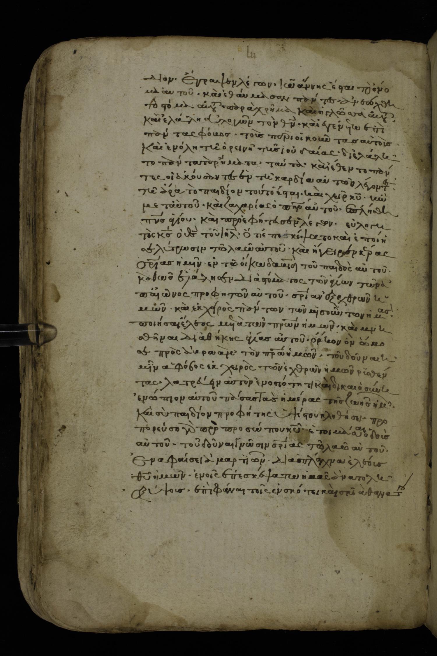 Fourteenth century minuscule of the Gospels on paper; 161 leaves, 1 column, 25-30 lines per column. Images were taken at the National Library of Greece in Athens.