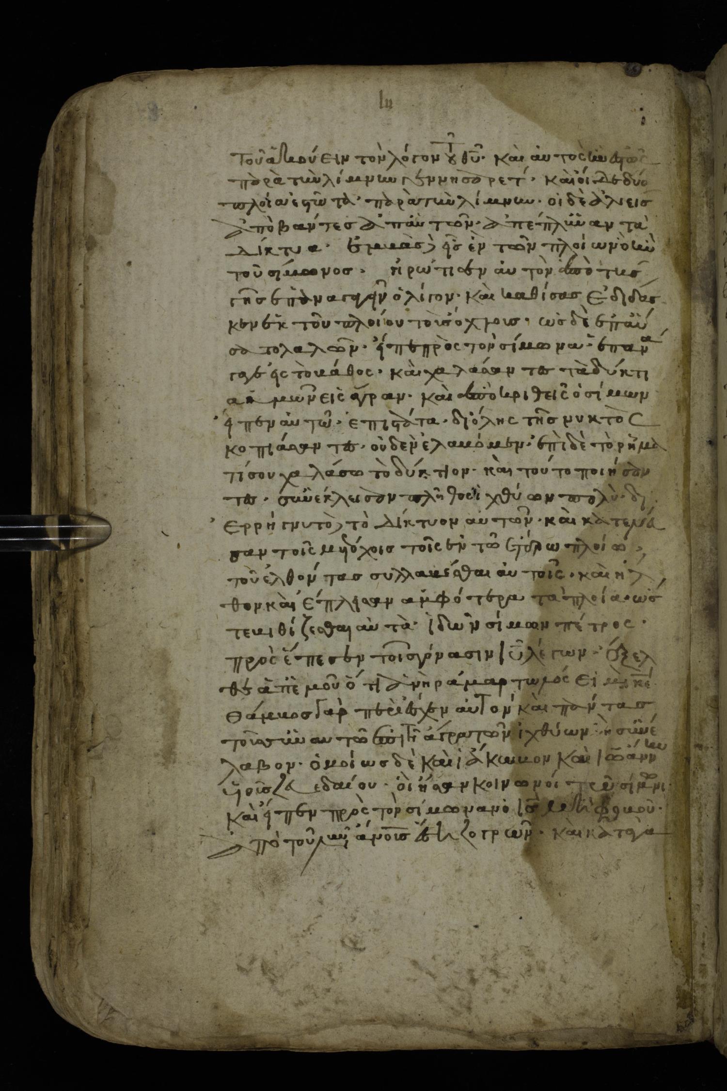 Fourteenth century minuscule of the Gospels on paper; 161 leaves, 1 column, 25-30 lines per column. Images were taken at the National Library of Greece in Athens.
