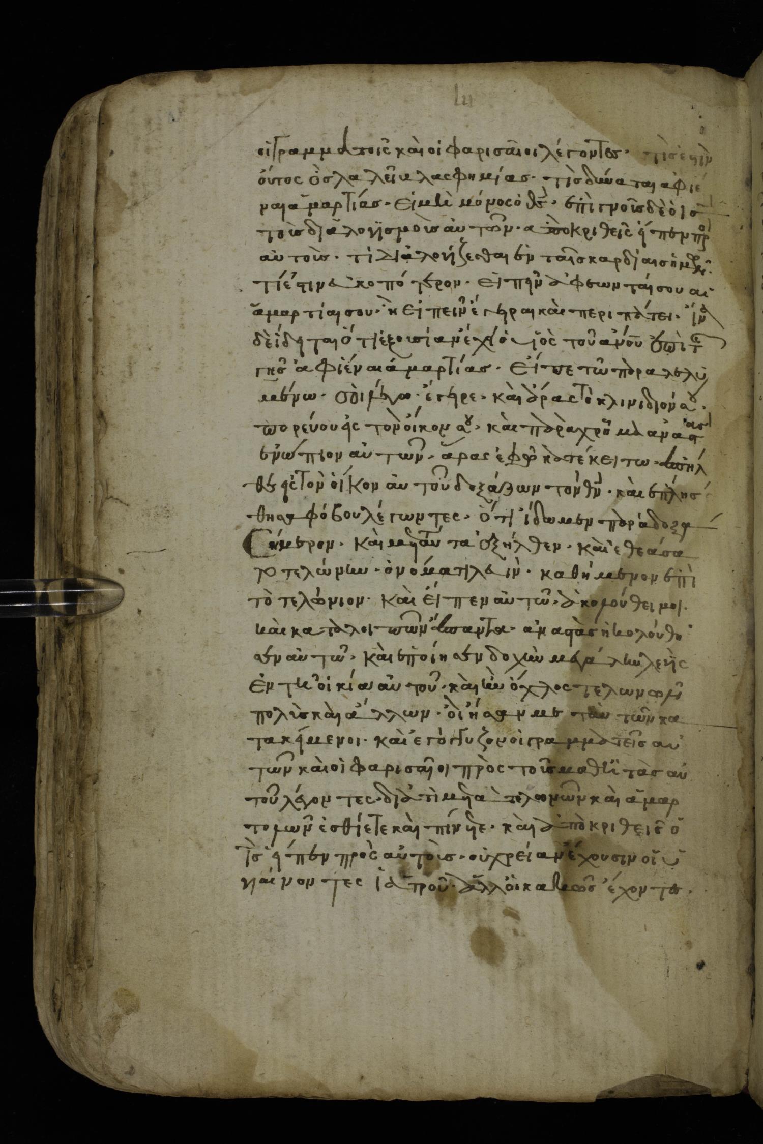 Fourteenth century minuscule of the Gospels on paper; 161 leaves, 1 column, 25-30 lines per column. Images were taken at the National Library of Greece in Athens.