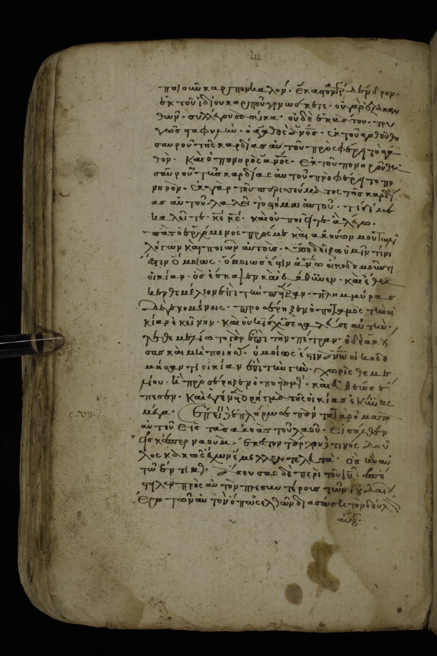 Fourteenth century minuscule of the Gospels on paper; 161 leaves, 1 column, 25-30 lines per column. Images were taken at the National Library of Greece in Athens.
